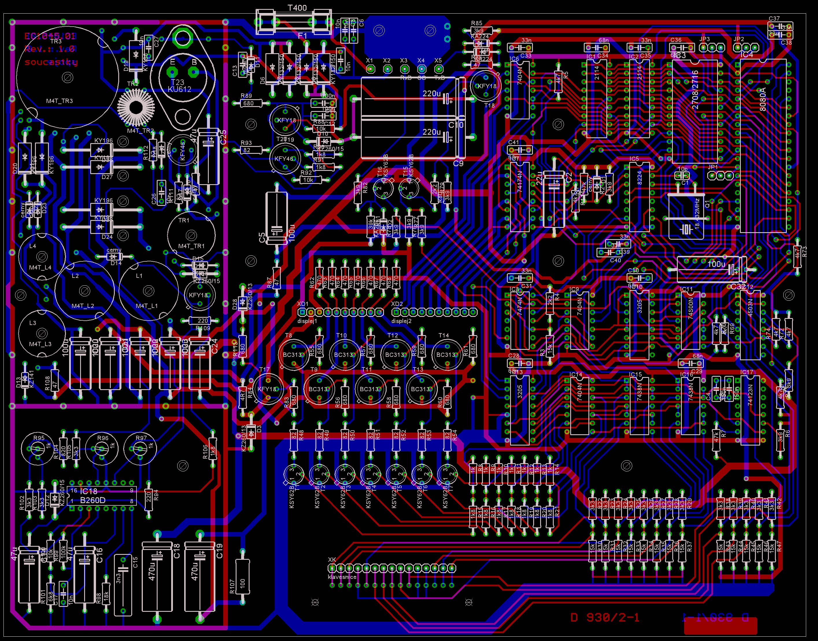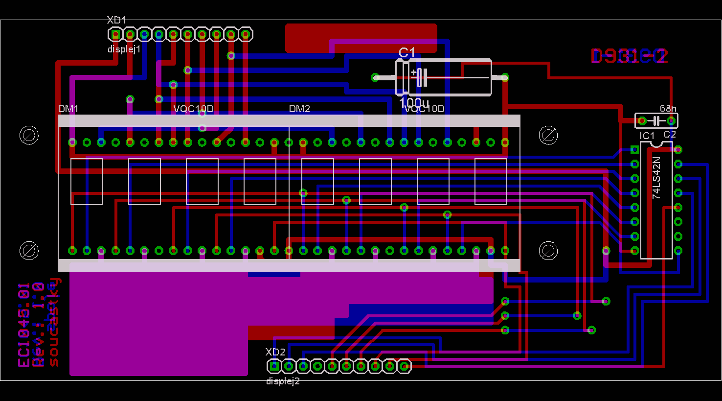 Schéma displeje (žákovská stanice) D931 a černobílá verze ZDE.