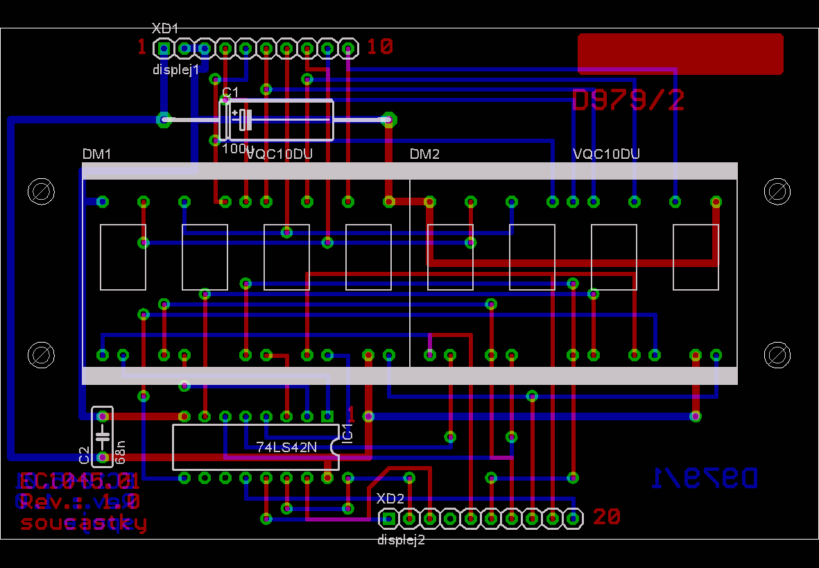 Schéma displeje (žákovská stanice) D979 a černobílá verze ZDE.