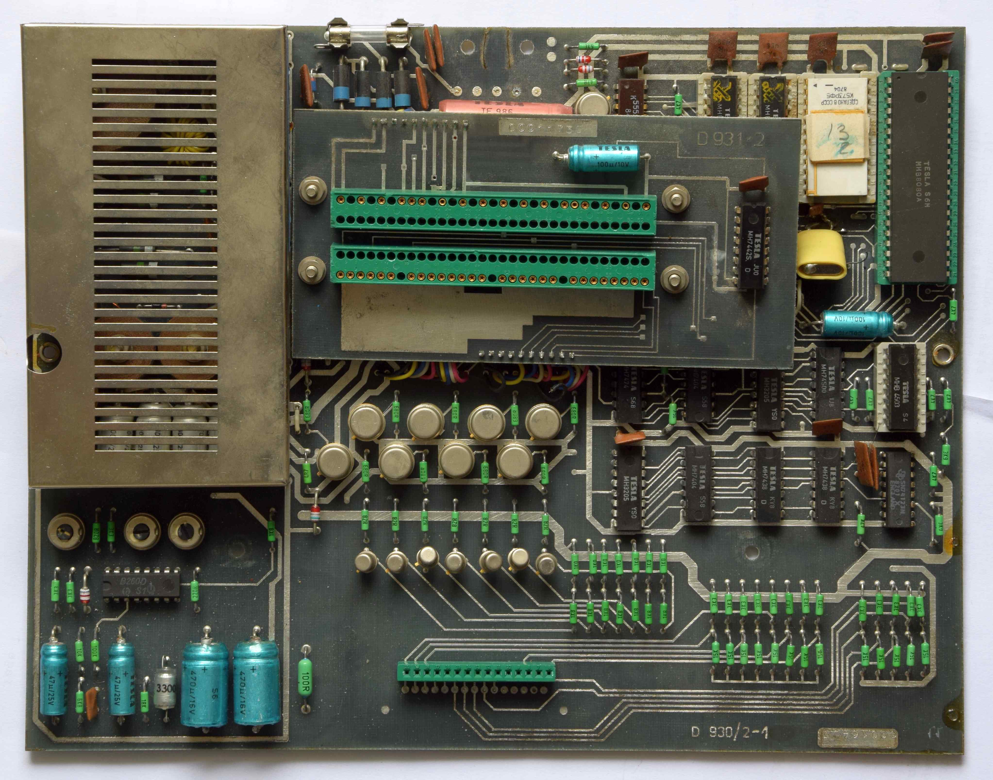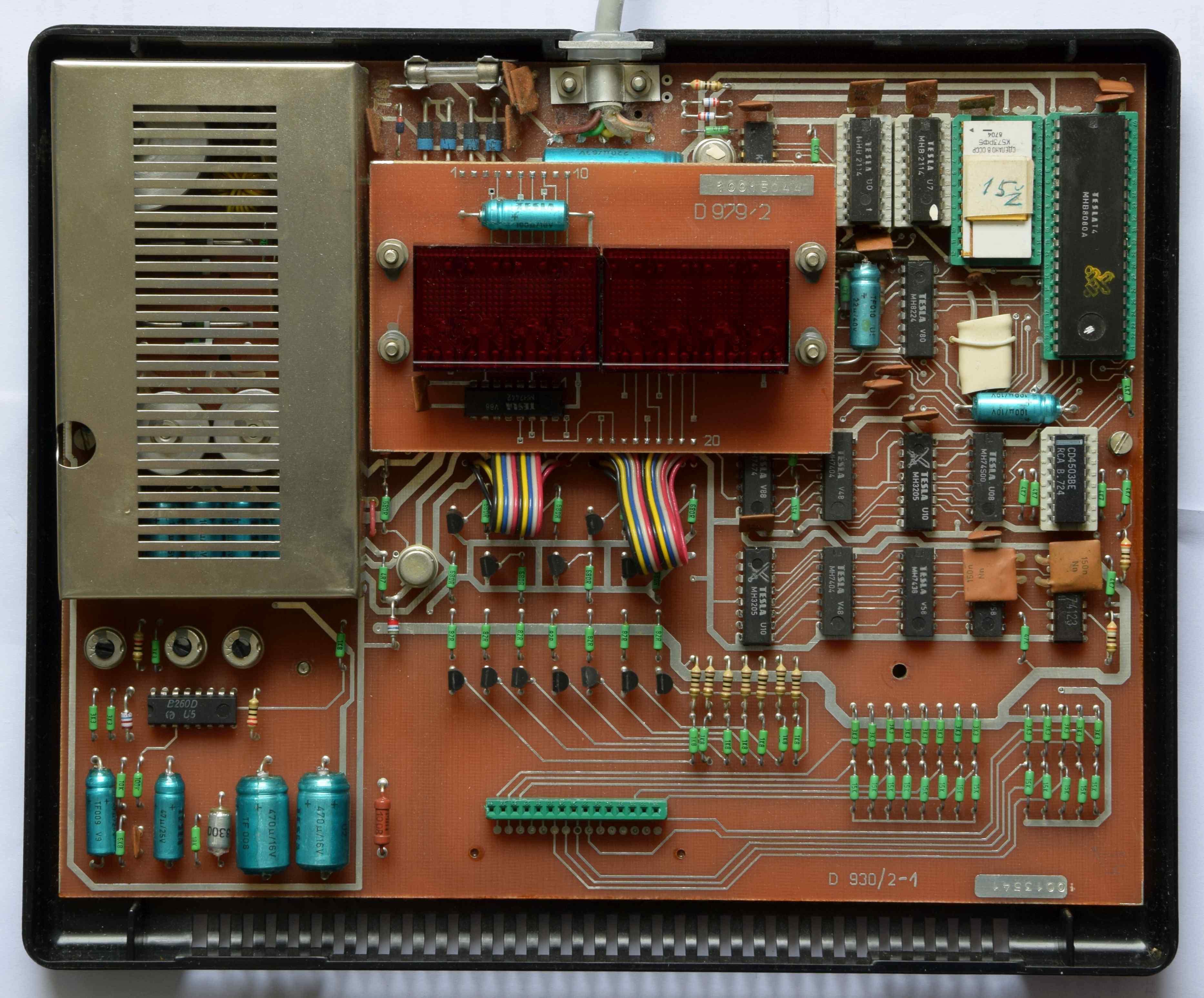 Konstrukce terminálu je zajímavá aneb obsahuje spínaný zdroj napálený z nízkého střídavého napětí, pravděpodobně ~24V. Zdroj obsahuje celkem čtyři větve kdy tři (+5V, -5V a +12V) napájí počítač a čtvrtá větev (+5V) napájí displej, zemně obou zdrojů jsou spojeny až na desce displeje. Srdcem terminálu je mikroprocesor MHB8080A, ale do svaté trojce chybí obvod MHB8228 (řídí obvod systému a budič sběrnice). 8080A může pracovat i bez obvodu 8228, pro jednoduché systémy se 8228 vetešinou nahrazovala 3212 (obdoba minimální konfigurace pro 8088/8086), ale i ta zde chybí. Zapojení počítače je osekáno na kost. Je možno osadit dva typy EPROM a to 2708 nebo 2716. Vlastní počítač je velmi kompaktní ale obvody displeje a klávesnice jsou dosti roztahané. Klávesnice je membránová typu TESLA TS 522 0001 a o zobrazení se starají dva čtyř místné maticové displeje VQC10 na separátní desce displeje. Vypadá to, že deska displeje existuje minimálně ve dvou verzích. Přenos dat je sériový a řízený programově, podle zapojení to nejspíše budou úrovně RS232C.