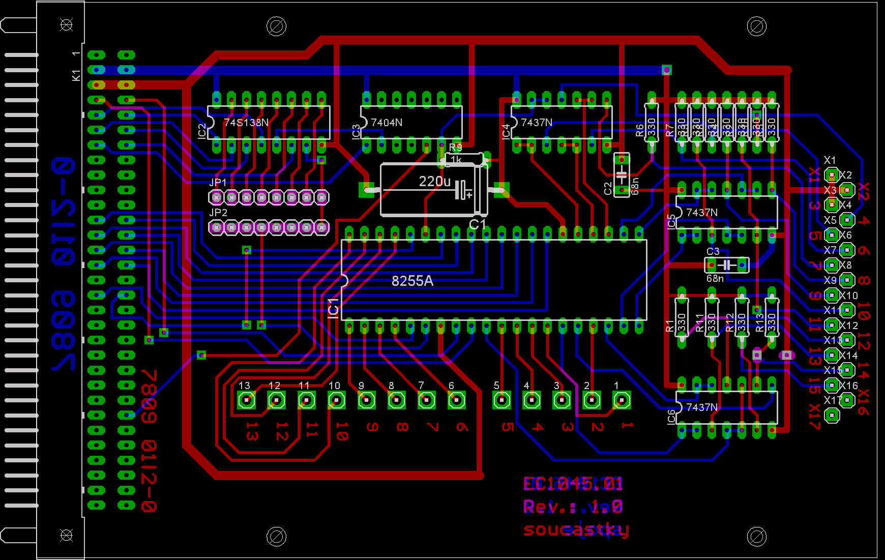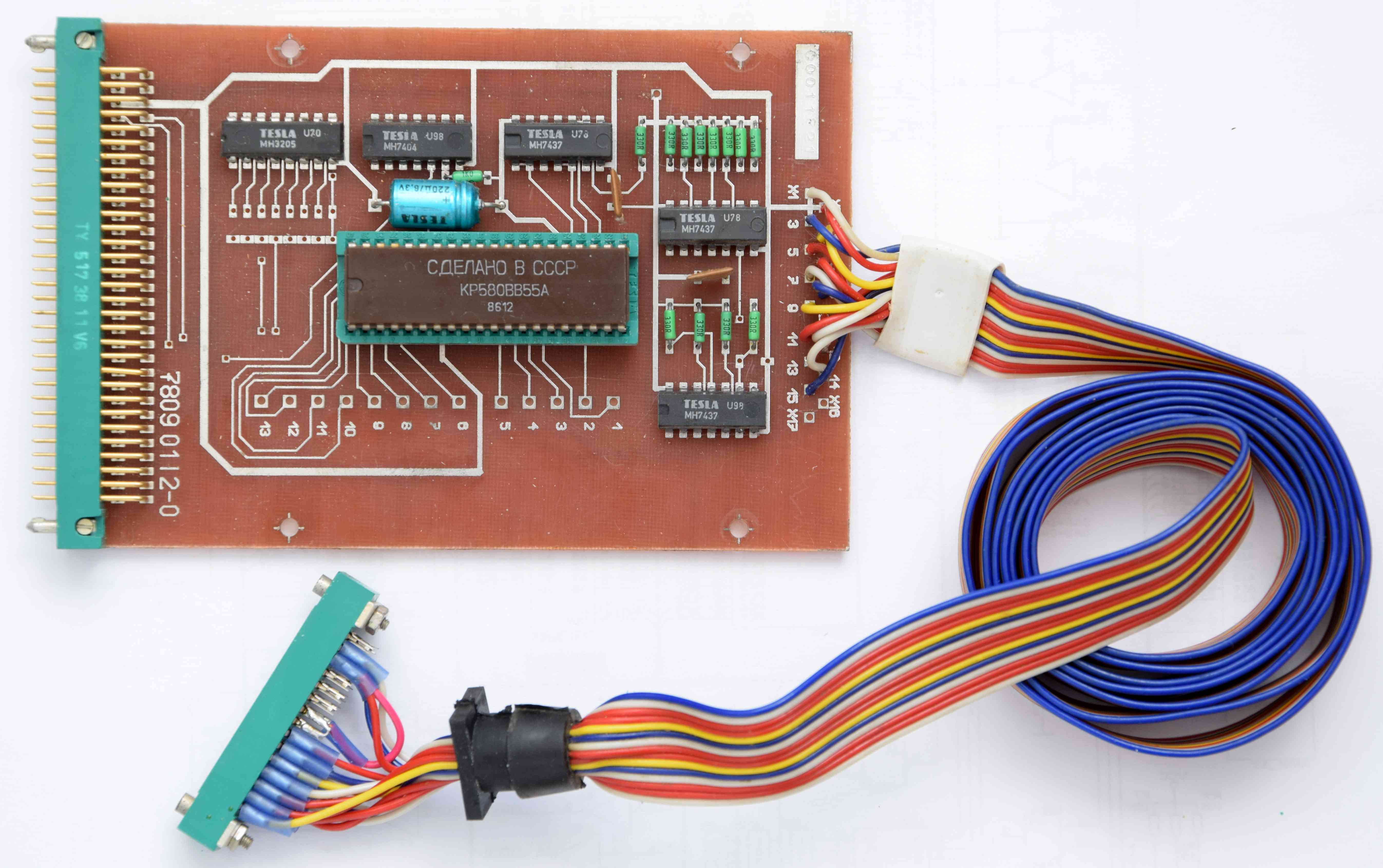 Modul obsahuje obvod 8255 kdy brána B je zapojená pro výstup v módu 1, všechny signály jsou oddělené přes výkonová NAND hradla (7437) a opatřena odpory 330R na +5V. Brána A a zbývající signály brány C jsou uvnitř modulu vyvedeny na pájecí plošky pro případné další využití.