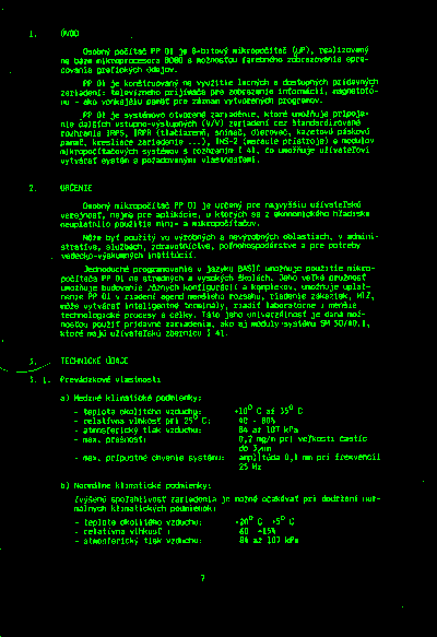 PP01 je velmi zajímavý 8 bitový počítač na československé poměry. Počítač má v základu barevný výstup a umožňuje