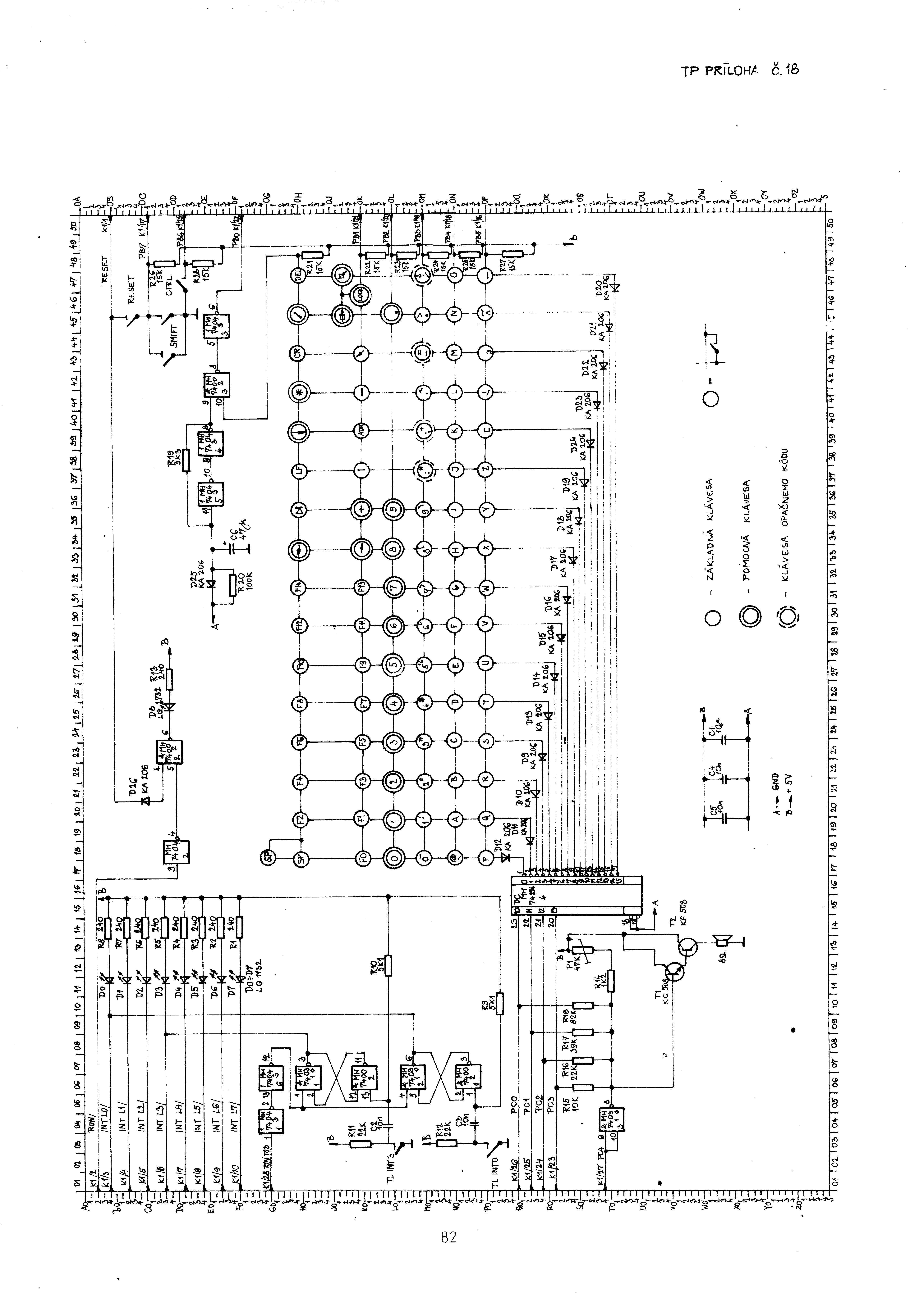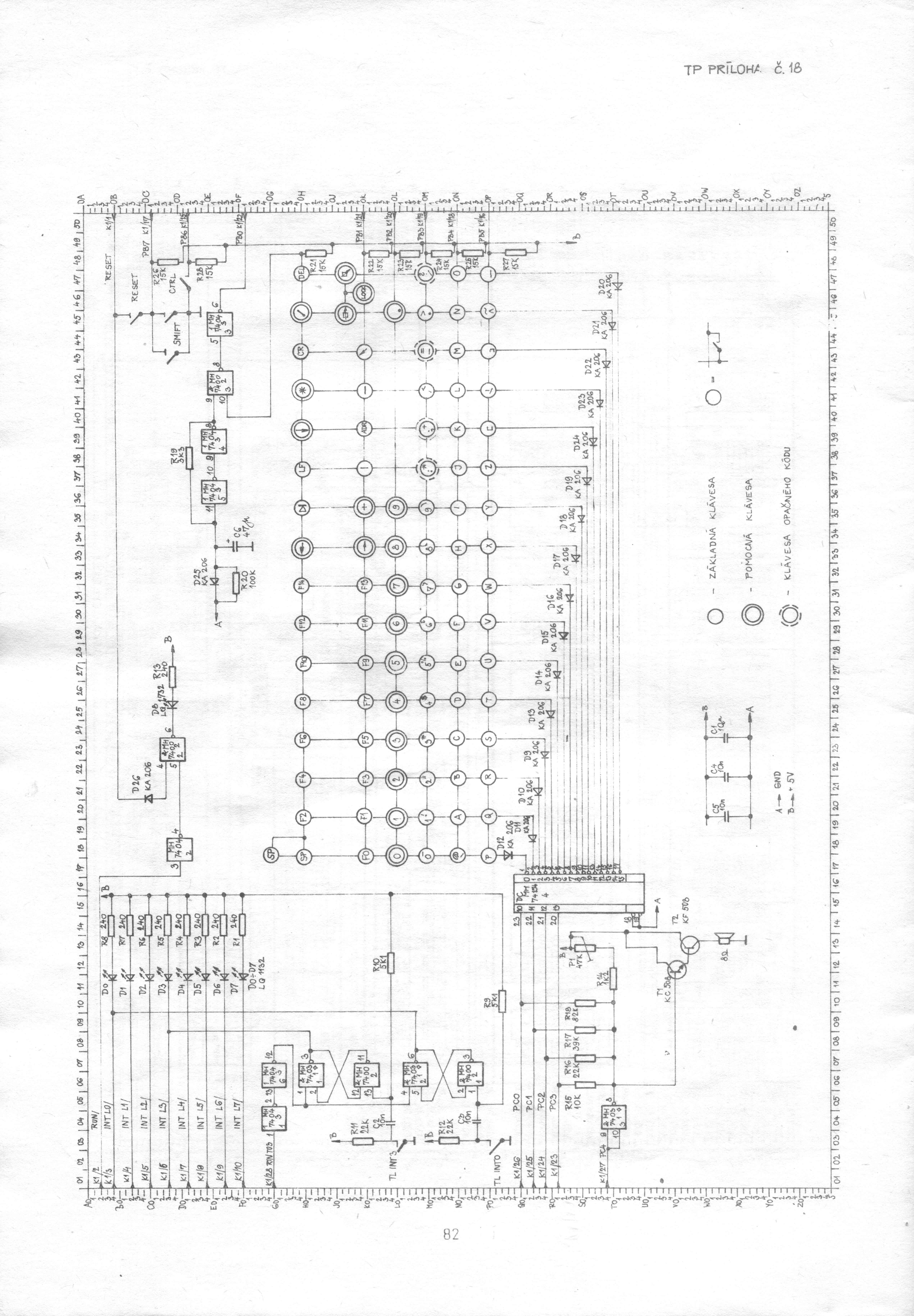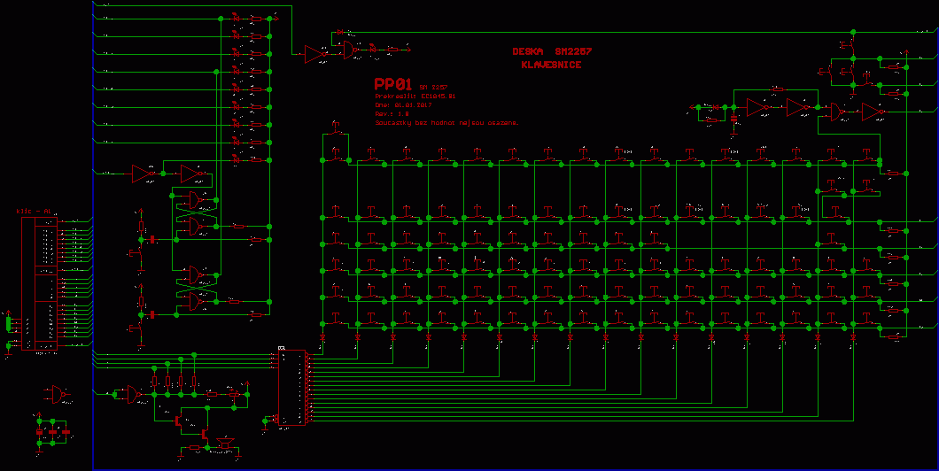 Schéma SM2257 KLÁVESNICE, černobílá verze ZDE, původní schéma ZDE a černobílá verze ZDE.