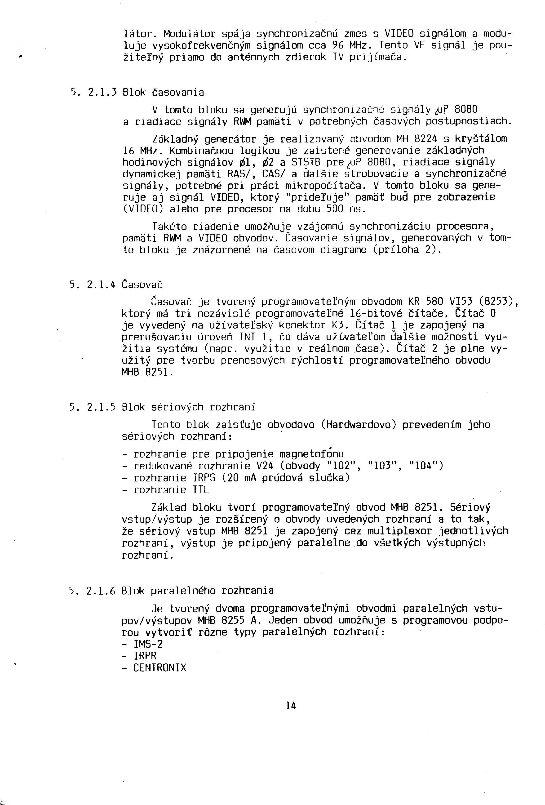 SAPI-1 | ONDRA | PMI-80 | PMD-85 | klony PMD-85 | klony SM50/40 | PETR | PLAN-80A | IQ151 | TNS | FK-1 | HVĚZDA | SP 830 | PCS 1-QR6000