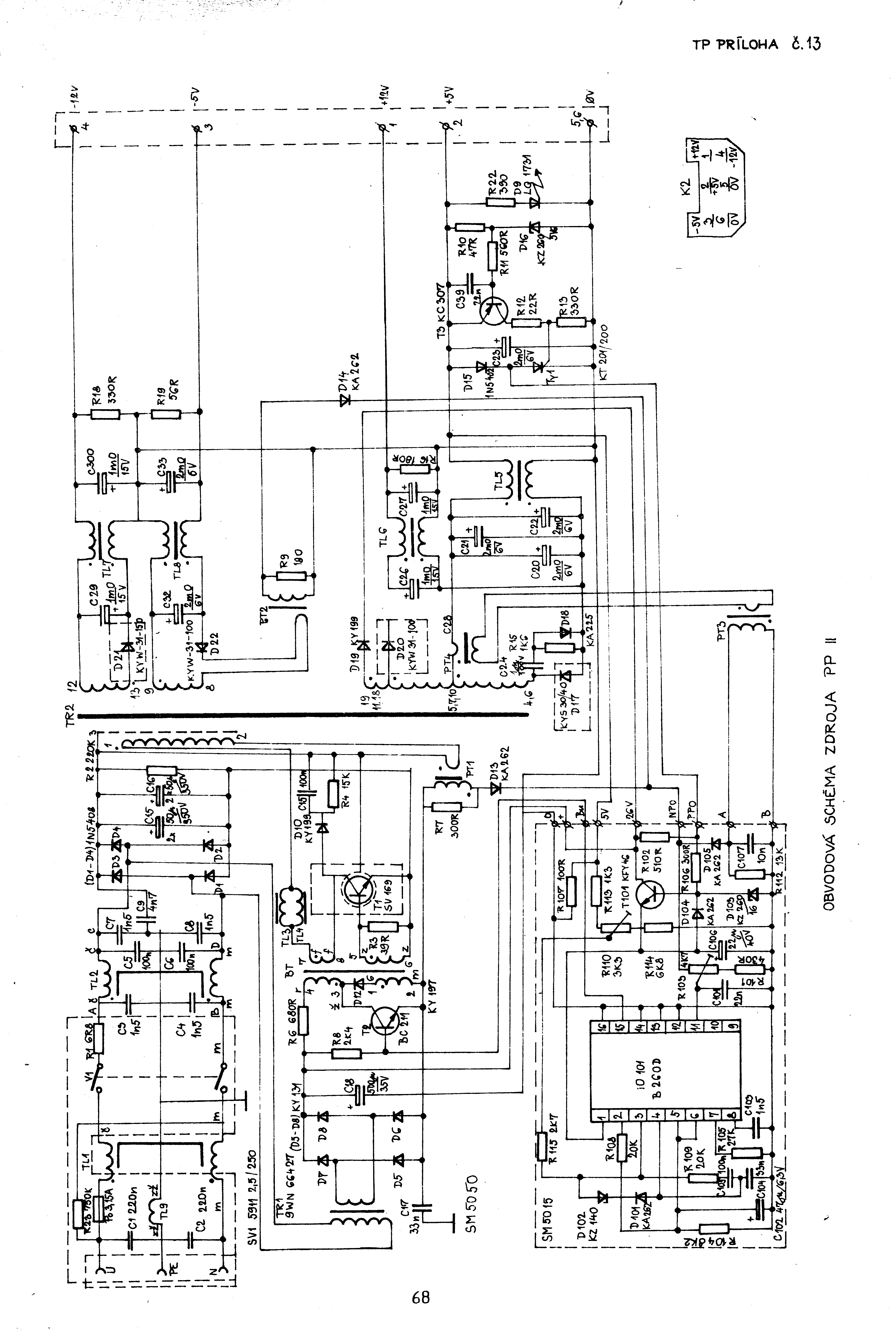 Schéma SM3103 2/11, černobílá verze ZDE, původní schéma ZDE a černobílá verze ZDE.
