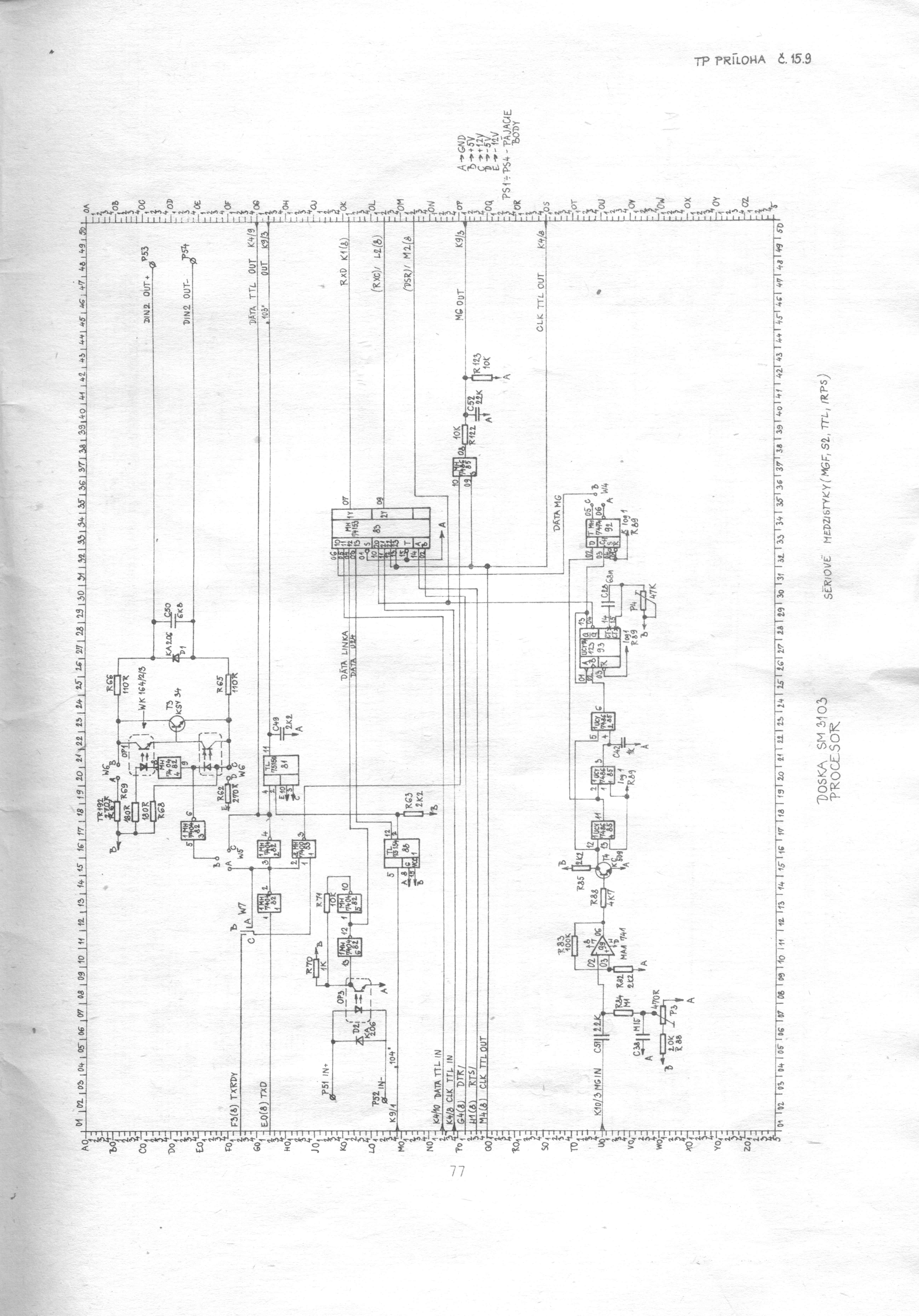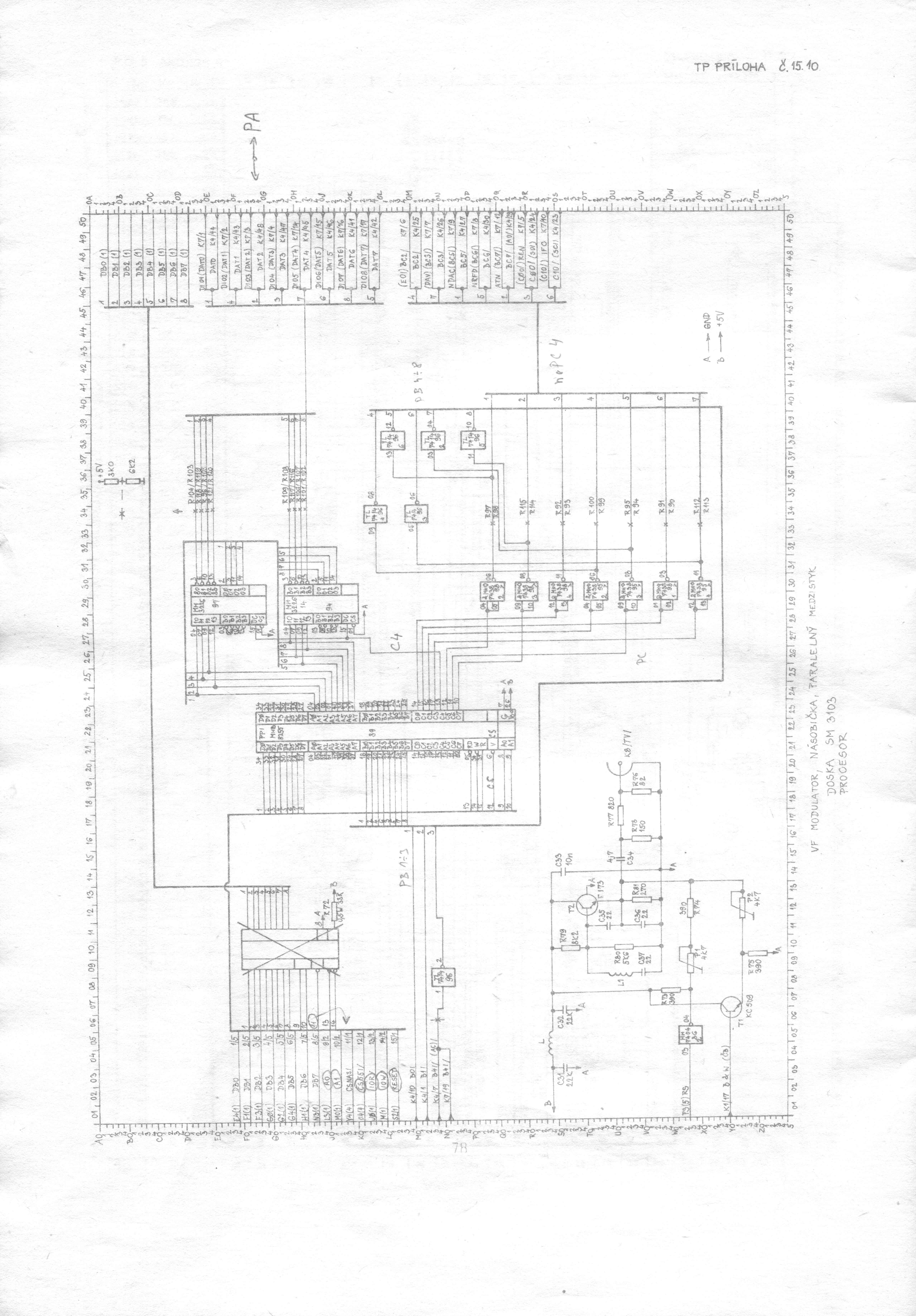 Schéma SM3103 5/11, černobílá verze ZDE, původní schéma ZDE a černobílá verze ZDE.