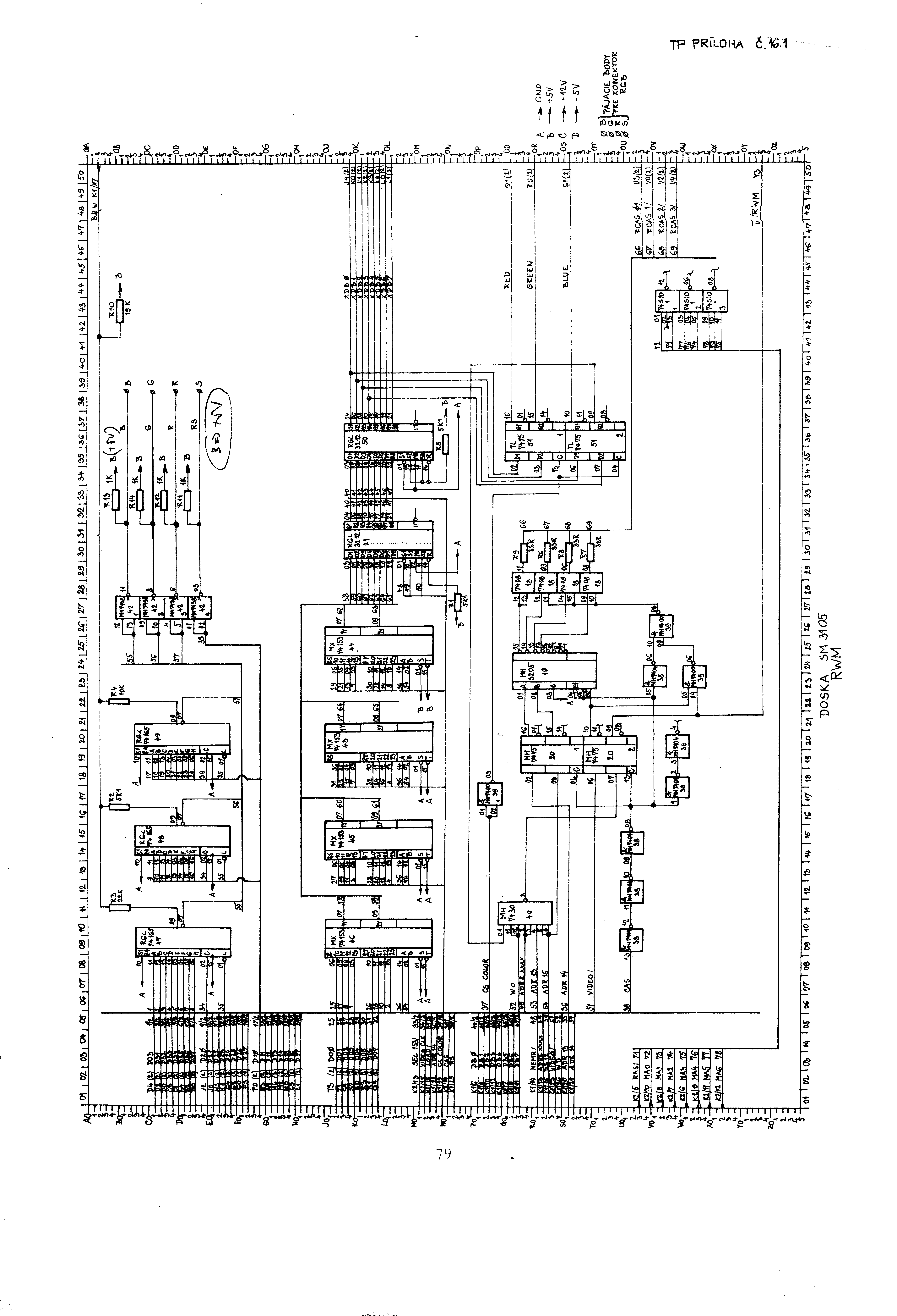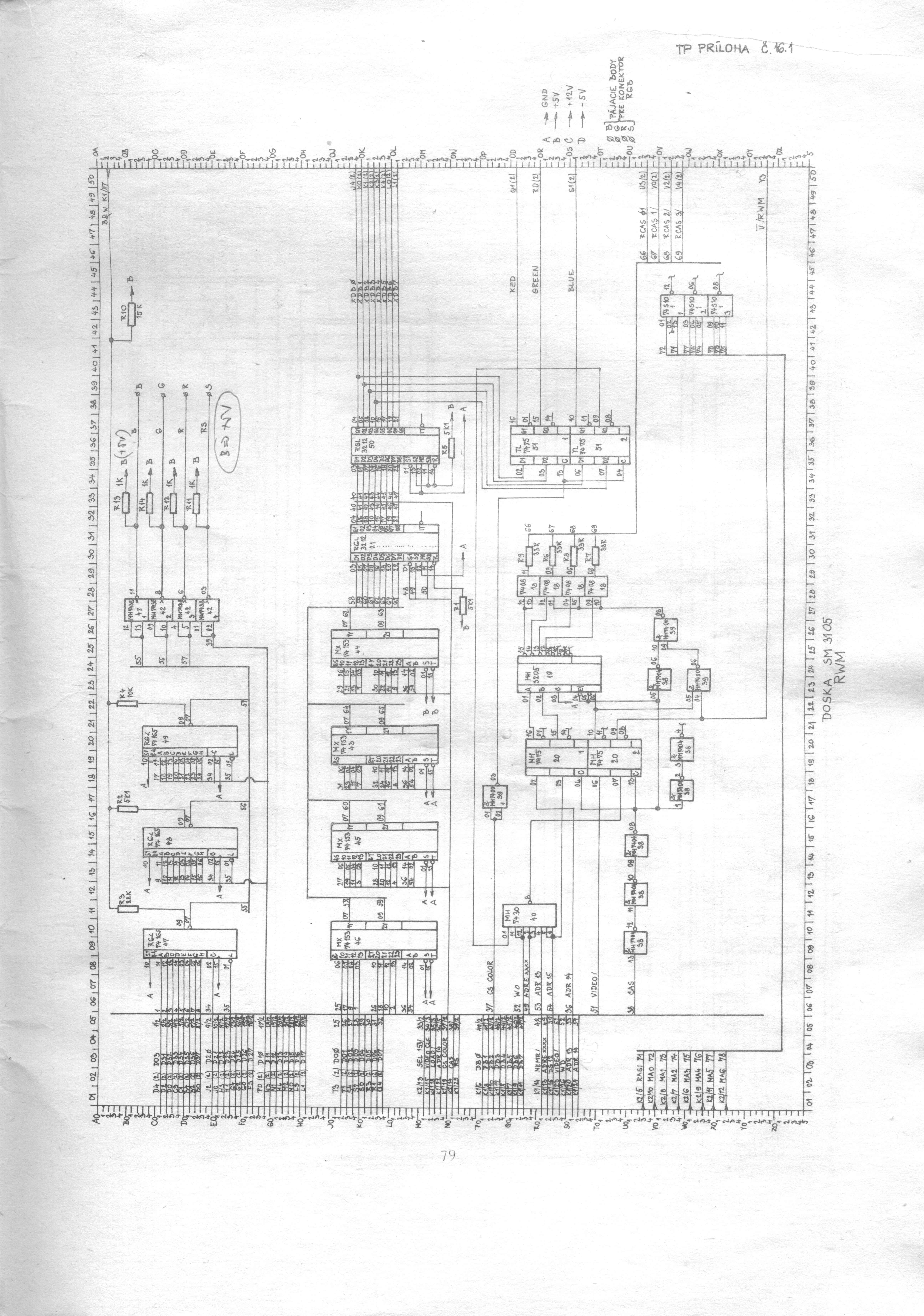 Schéma SM3105 RWM, černobílá verze ZDE, původní schéma ZDE 1/2 2/2 a černobílá verze ZDE 1/2 2/2.