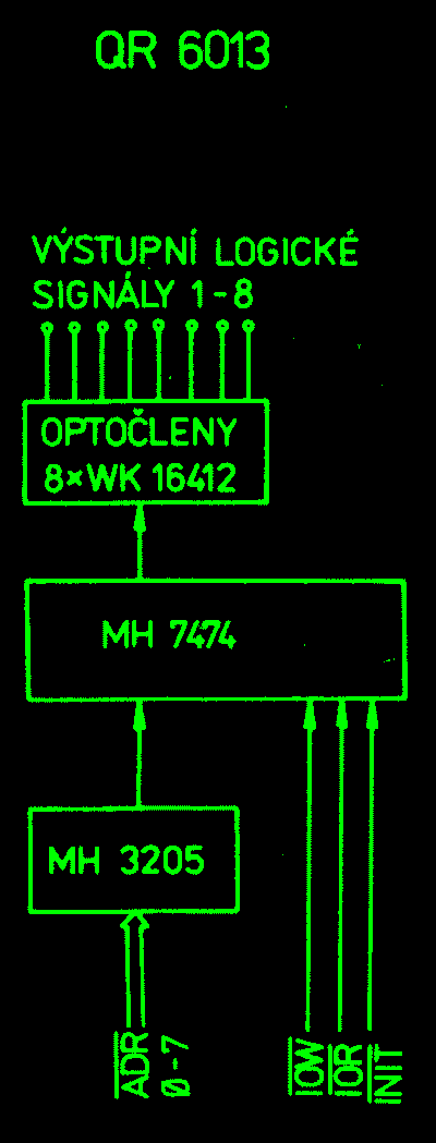 Nastavení příslušného logického výstupu se uskuteční instrukcí OUT ADR, instrukcí IN ADR se tento výstup anuluje. Bity A0, A1, A2 adresy určují logický výstup jednotky IO 4. Bity A2 až A7 určují adresu jednotky IO 4 v adresovém poli vstupních / výstupních zařízení, přičemž volbu této adresy umožňuje propojovací pole, které je součástí adresového dekodéru.