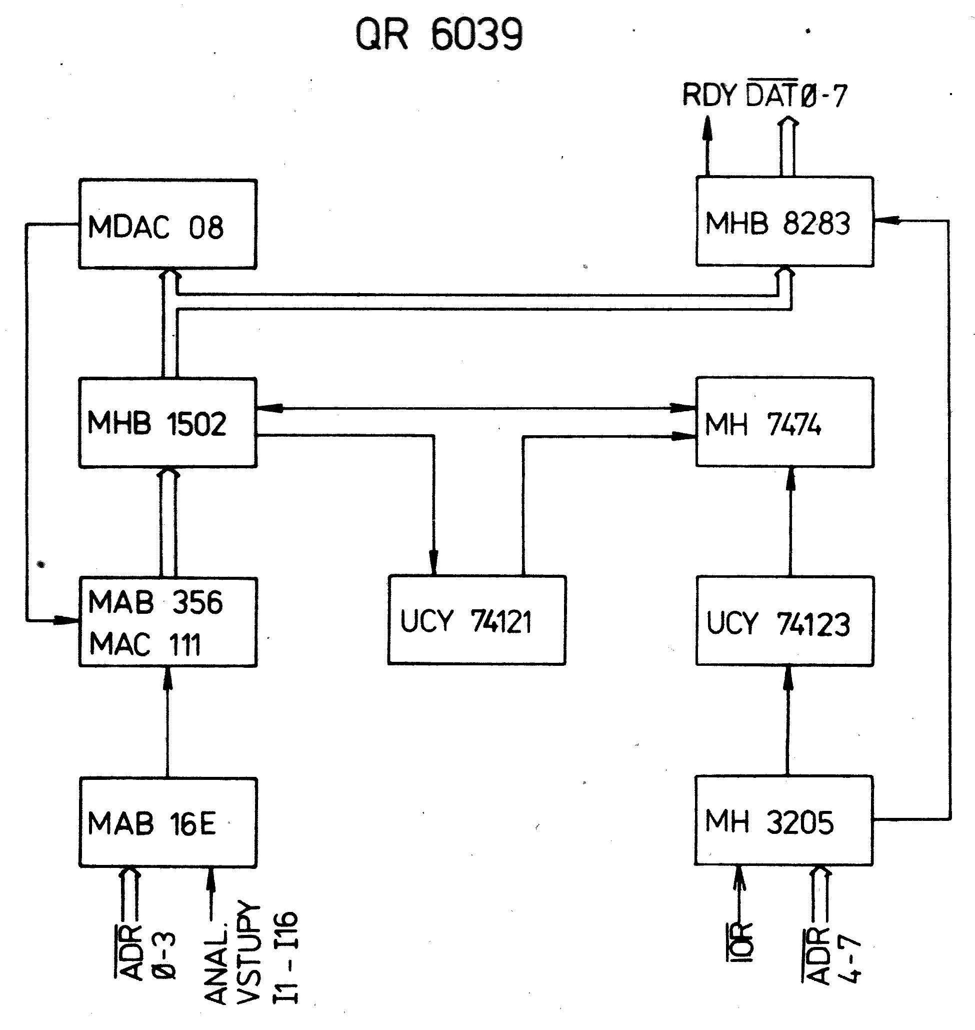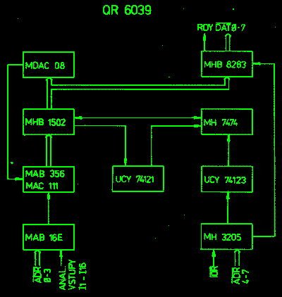 Modul obsahuje osmibitový aproximační analogově číslicový převodník a vstupní 16 kanálový analogový multiplexor. Napěťový nebo proudový vstup se volí přepínačem v příslušném vstupním kanálu. Převodník může zpracovat jednopolaritní nebo dvoupolaritní vstupní signály. Druh přepínače se nastavuje přepínačem v obvodu komparátoru. U jednopolaritních vstupních signálů je vstupní údaj převodníku v přirozeném binárním kódu. Při dvoupolaritním provozu je kód datového údaje dvojí - doplňkový nebo posunutý binární a volí se přepínačem.
