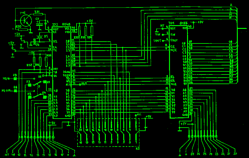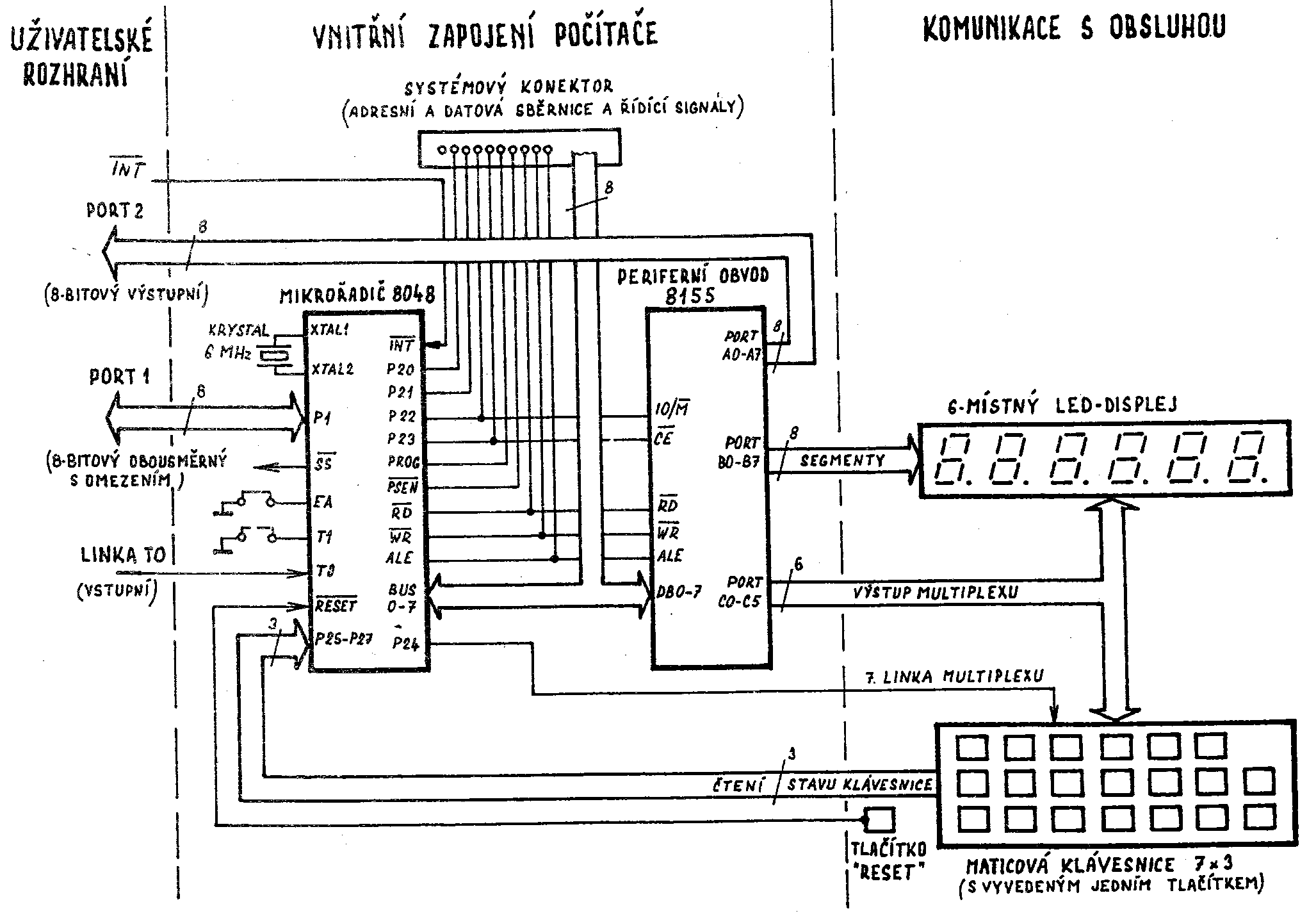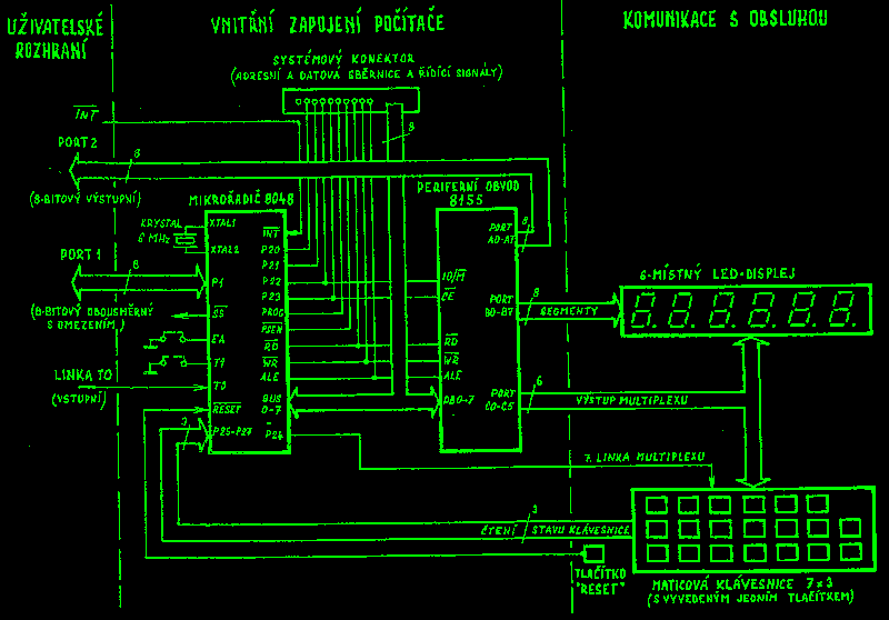 Na jiných místech je zase zmínka o jednočipovém mikropočítači řady 8048. Jednočipový mikropočítač je jeden poměrně složitý integrovaný obvod (obsahuje zhruba 20 tisíc tranzistorů na křemíkové destičce - čipu o velikosti 22 mm2 ) a tvoří jádro mikropočítače PETR.