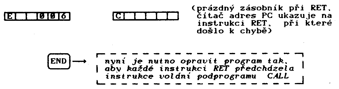Při ladění programu lze na displeji kdykoliv zobrazit, stav ukazovátka do zásobníku SP. Tak je možno zjistit, kolik podprogramů je v té chvíli do sebe vnořených. Nelze však prohlížet obsah zásobníku adres a tedy ani zjišťovat, které podprogramy to jsou. To je však zřejmé z výpisu laděného programu.