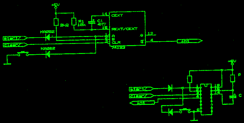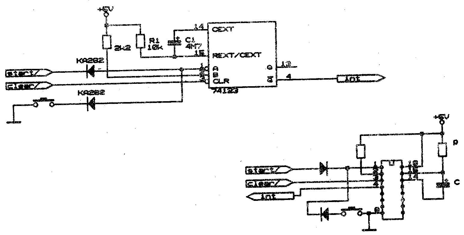 Přerušeni se vyvolá logickou úrovní 0 na vstupní lince INT. Pak je nutné počítat s tím, že pokud tato úroveň na lince INT trvá, toto přerušení nastane pokaždé, když ho program povolí. Jednu a tutéž žádost o přerušení může tedy počítač obsloužit i několikrát. Tomu lze předejit, pokud žádosti o přerušení na lince INT maji tvar pulsů s minimální přípustnou délkou 7,5 µs. Maximální délka není omezena technickým řešením počítače, ale konstrukci řídicího programu (puls musí skončit dříve, než program znovu povolí přerušení instrukcí INT i ). Návod, jak zajistit generováni vhodných pulsů, je uveden jako příklad v kapitole 7.