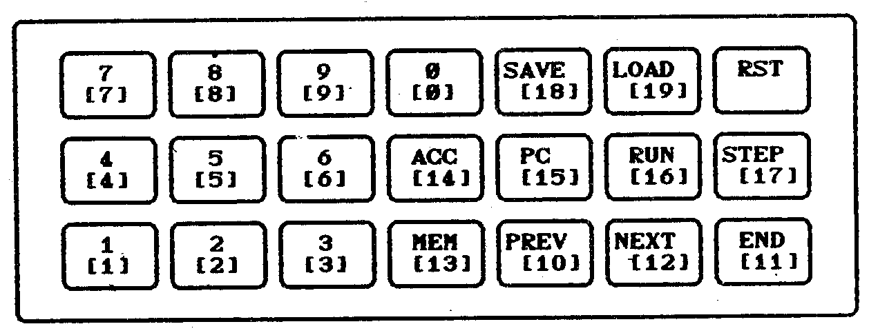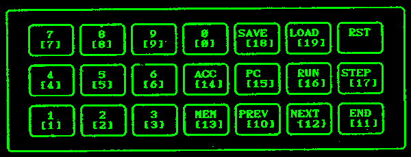 | 26.xxx | KEY | čteni klávesnice | ACC:=KEY přejte kód tlačítka není-li stisknuta žádná klávesa. vrací ACC:=128 |