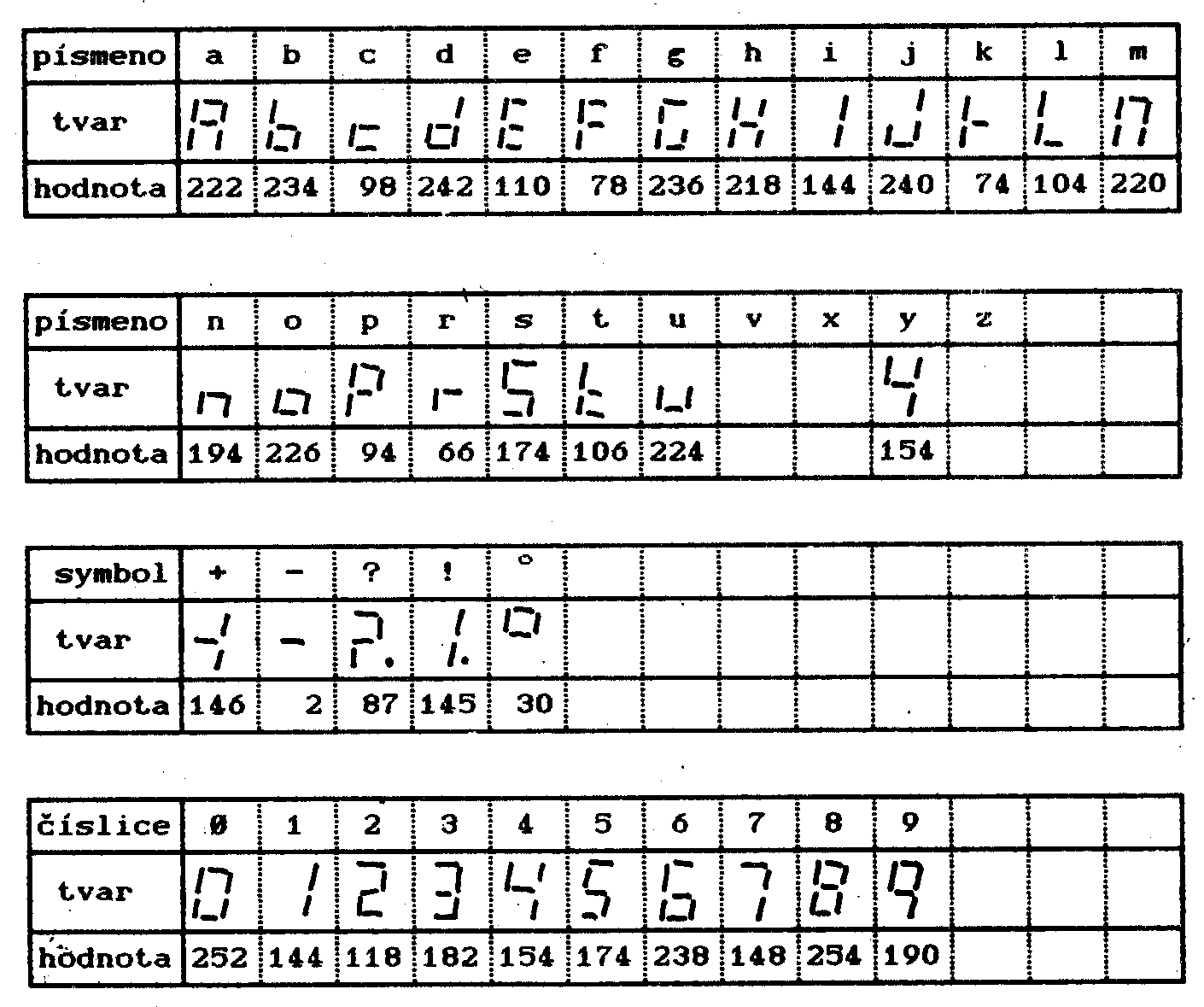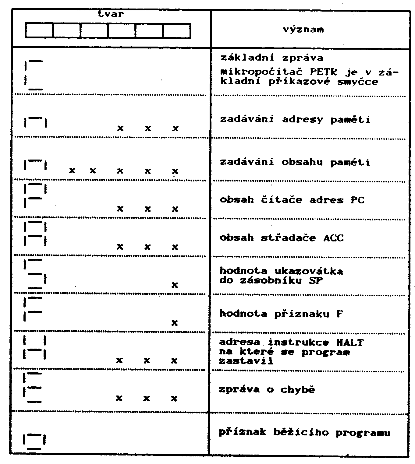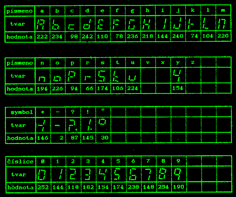 | 01.xxx | HALT | zastavení programu | na displeji se vypíše "H" Jako příznak a "aaa" jako adresa zastavení HALT |