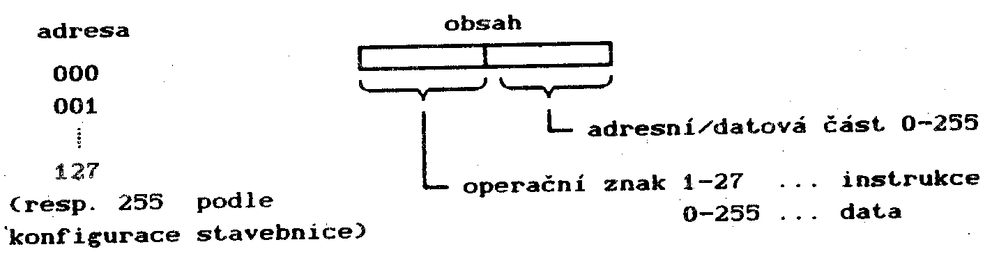 Je zřejmé, že podle hodnoty operačního znaku nelze rozlišit, zda na určité adrese je uložena instrukce programu či data. Toto rozlišení záleží na programátorovi resp. obsluze, která program spouští.