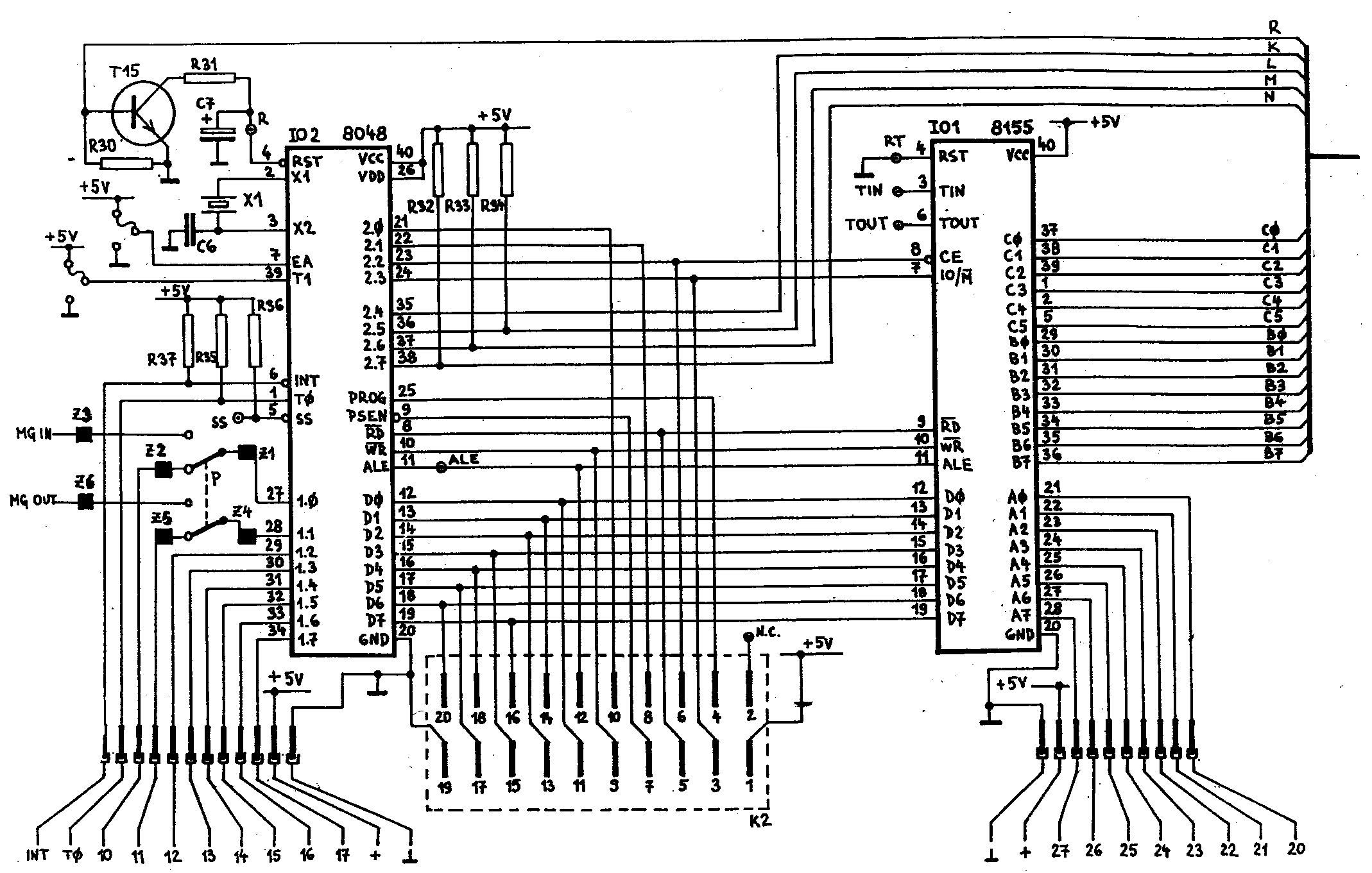 Pro připojení do vnějšího prostředí - obvykle do řízeného objektu - má mikropočítač PETR vyčleněno 18 vstupních/výstupních linek. Základní instrukce mikropočítače přitom umožňují tyto linky přímo ovládat a vyhodnocovat, což velmi usnadňuje vytváření řídicích programů. 16 linek je sdruženo do dvou osmibitových bran P1,P2 (Ports), z nichž brána P1 je obousměrná a brána P2 pouze výstupní. Instrukce umožňují pracovat buď s celou bránou najednou, nebo s jednotlivými linkami. Zbylé dvě linky T0 (Test Pin) a INT (Interrupt) maji zvláštní význam. Linka T0 je pouze vstupní, její stav je testovatelný instrukcí podmíněného skoku, linka INT je rovněž vstupní, má význam žádosti o přerušeni.