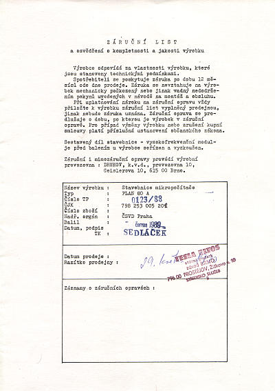 SAPI-1 | ONDRA | PMI-80 | PMD-85 | klony PMD-85 | klony SM50/40 | PETR | PLAN-80A | IQ151 | TNS | FK-1 | HVĚZDA | SP 830 | PCS 1-QR6000