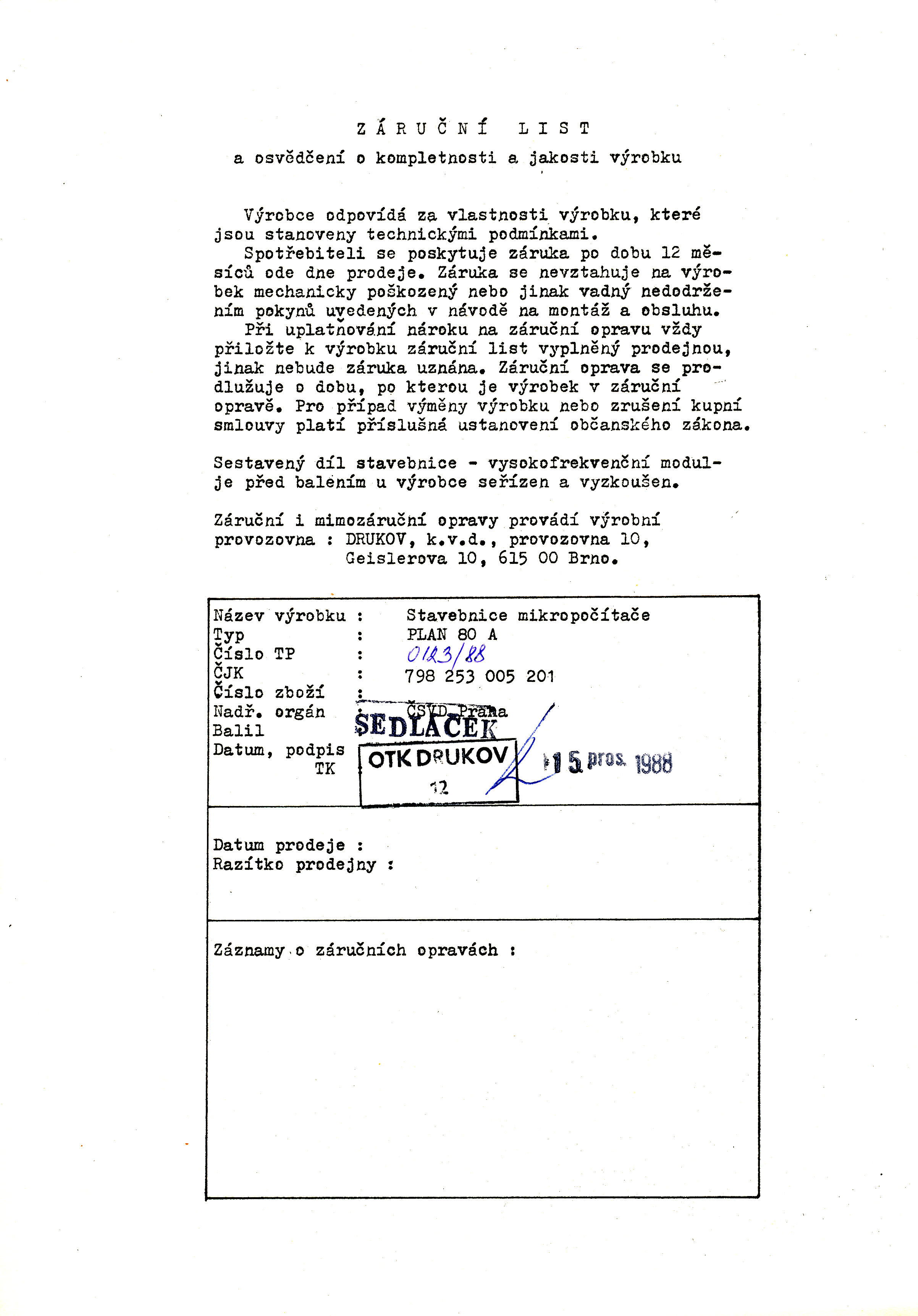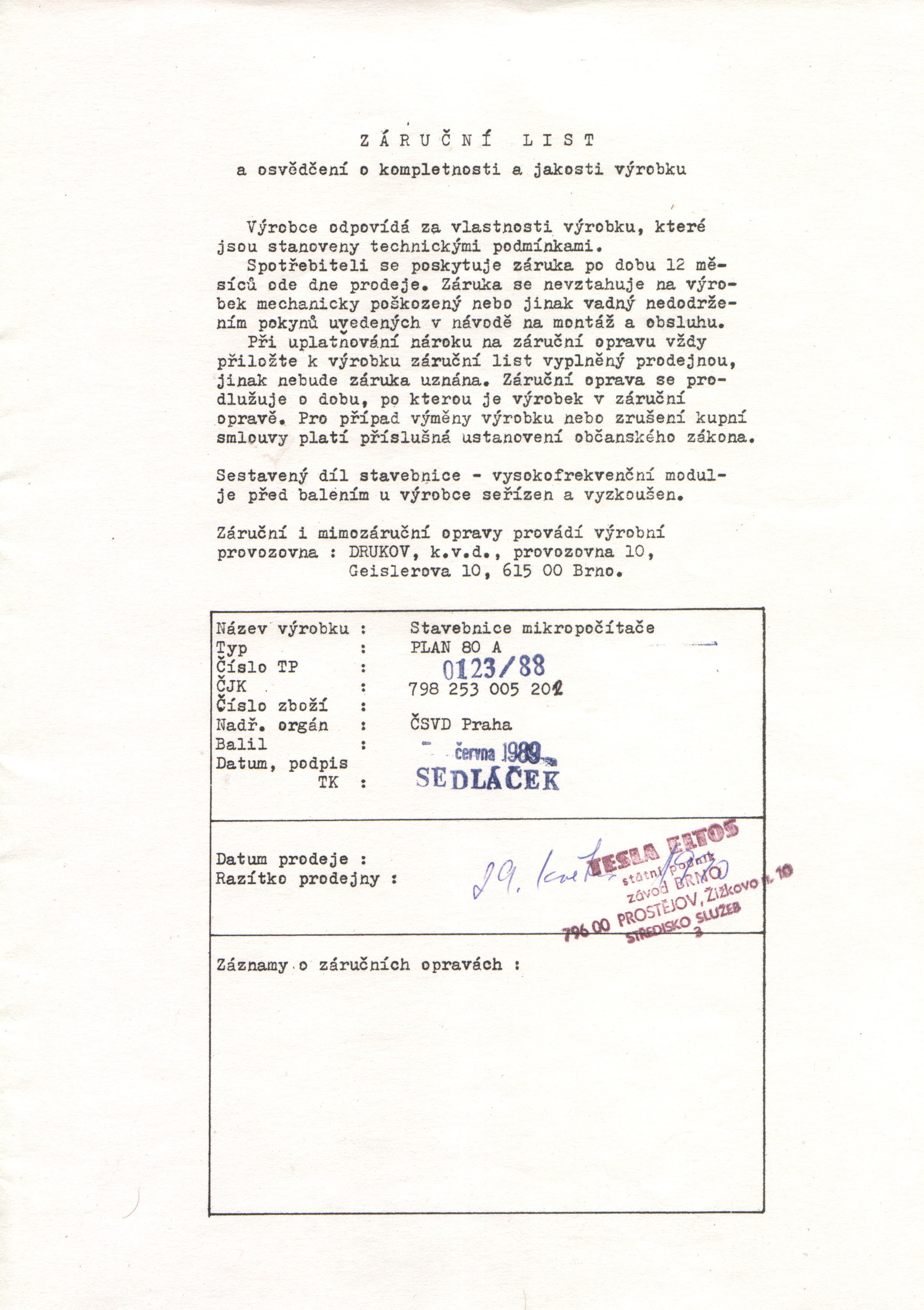 U stavebnice PLAN 80A byla provedena záměna paměti EPROM pro MODEM a MONITOR paměťmi PROM MHB 2616, které jsou