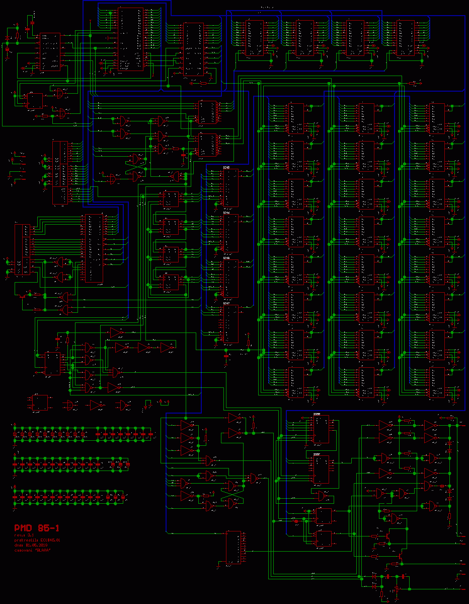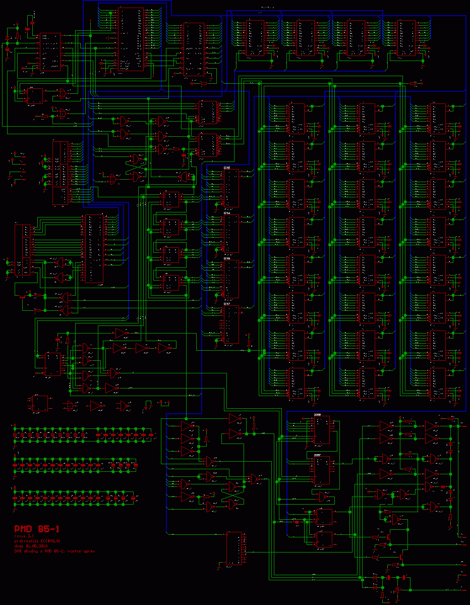 Schéma PMD 85-1 s úpravou která je shodná s PMD 85-2 a černobílá verze ZDE.