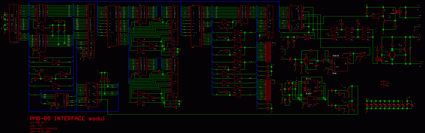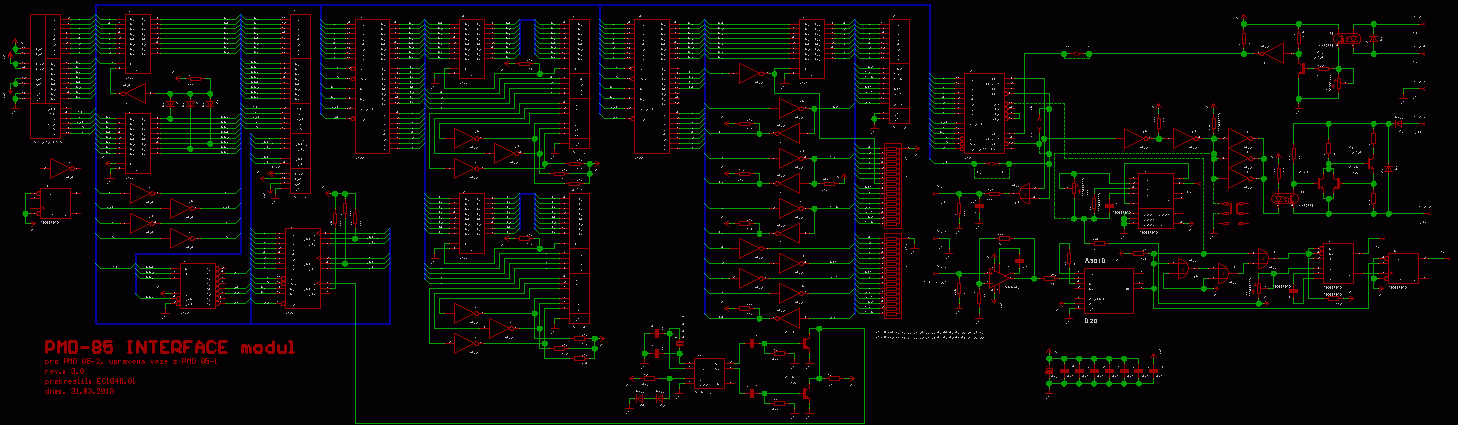 Schéma PMD 85-2 s úpravou která je shodná s PMD 85-1 a černobílá verze ZDE.