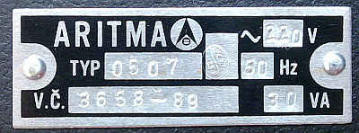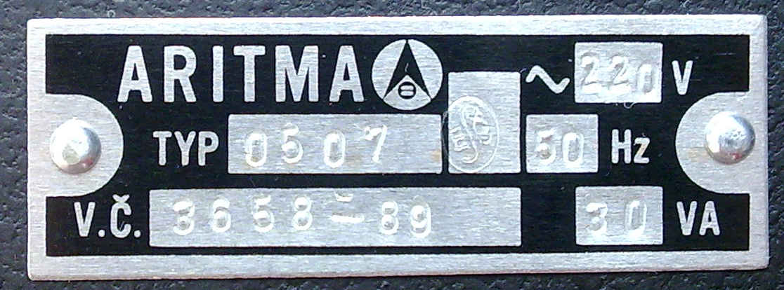 Výrobce : ARITMA PRAHA koncernový podnik, 160 05 Praha 6, Lužná 591