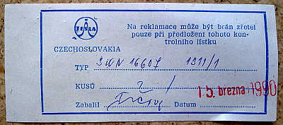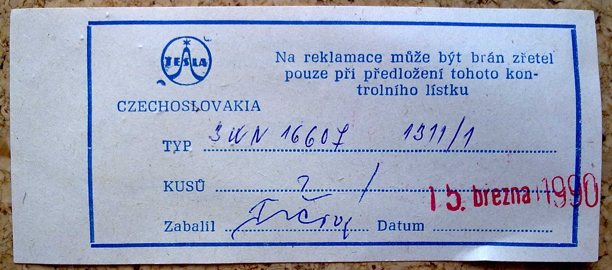 | Výrobce | : TESLA Blatná k.p., Palackého 644, Blatná 388 15 |