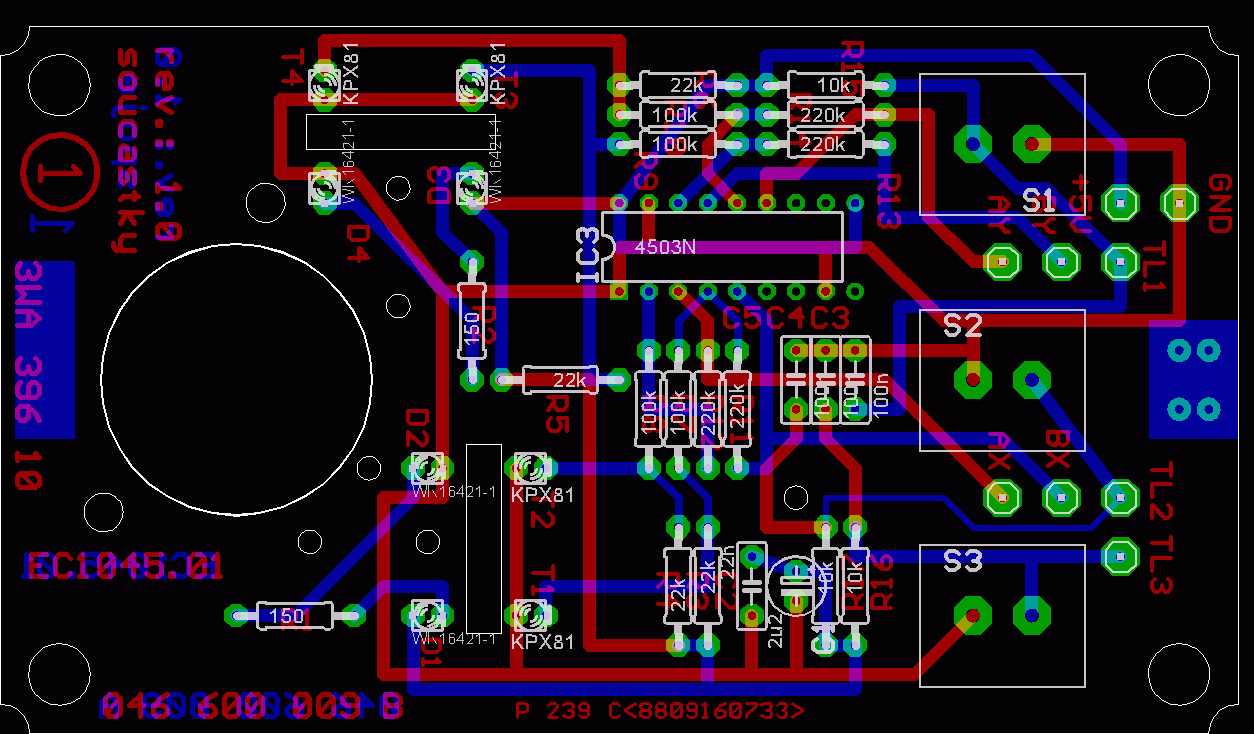 | označení signálů | Ax | Bx | Ay | By | Tl 1 | Tl 2 | Tl 3 | Ucc | GND |