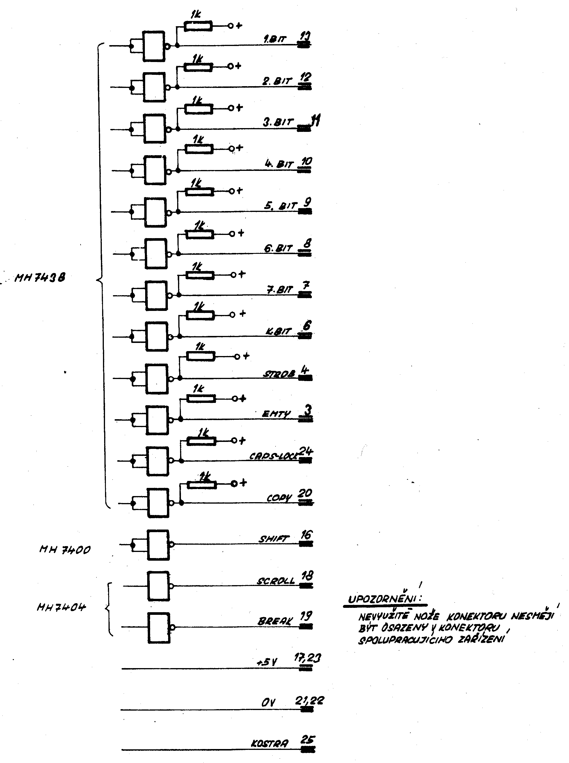 Při stlačení některého z těchto tlačítek generuje se příslušný kód (signály BIT 1 - BIT 7) z kódové tabulky podle přílohy č. 10 a současně se generuje signál "STROB". Na tato tlačítka nemají vliv ani tlačítka č. 76 a 78 (SHIFT) resp. 55 (CAPS LOCK). Stav signálu BIT K je klidový.