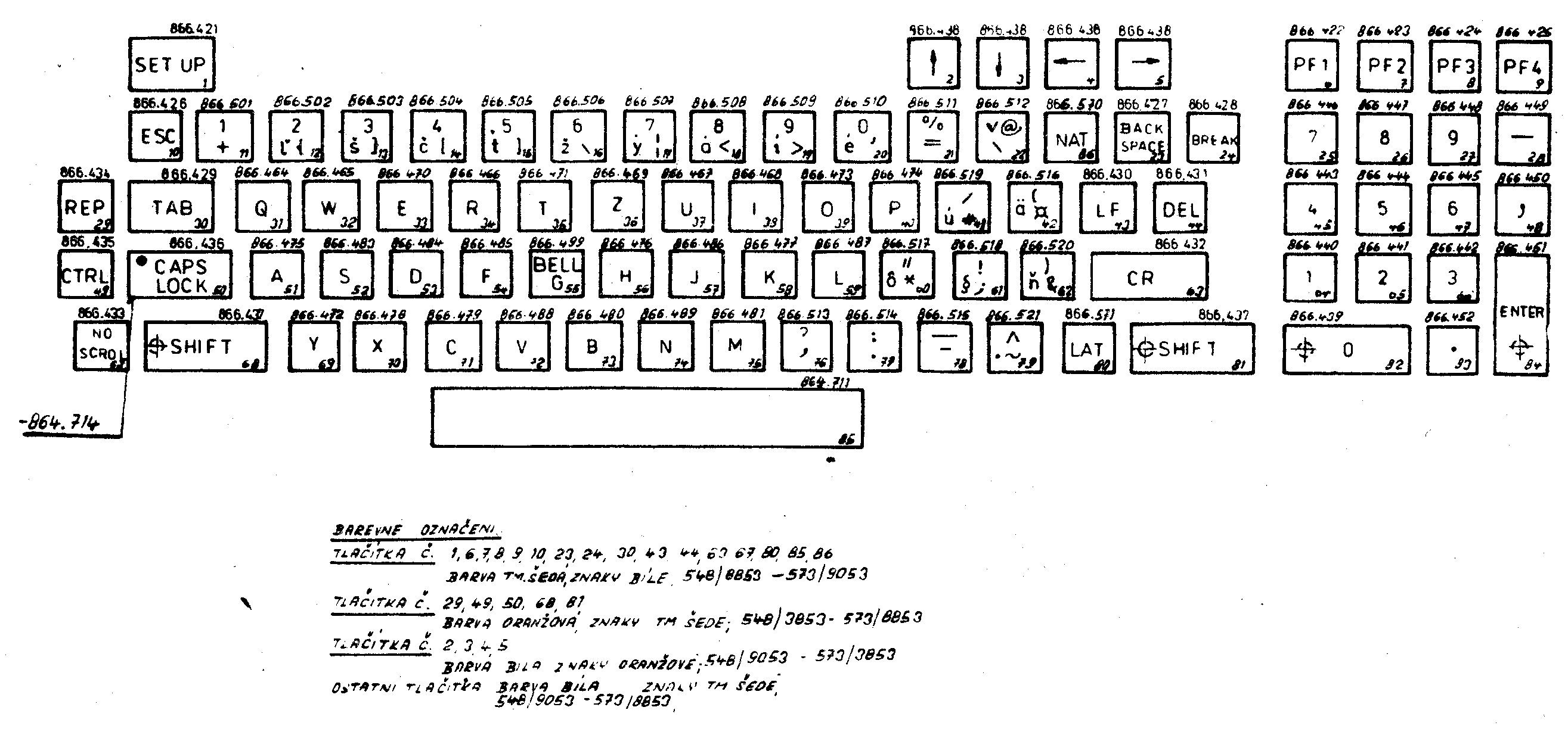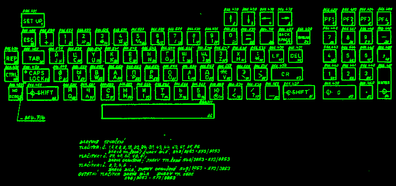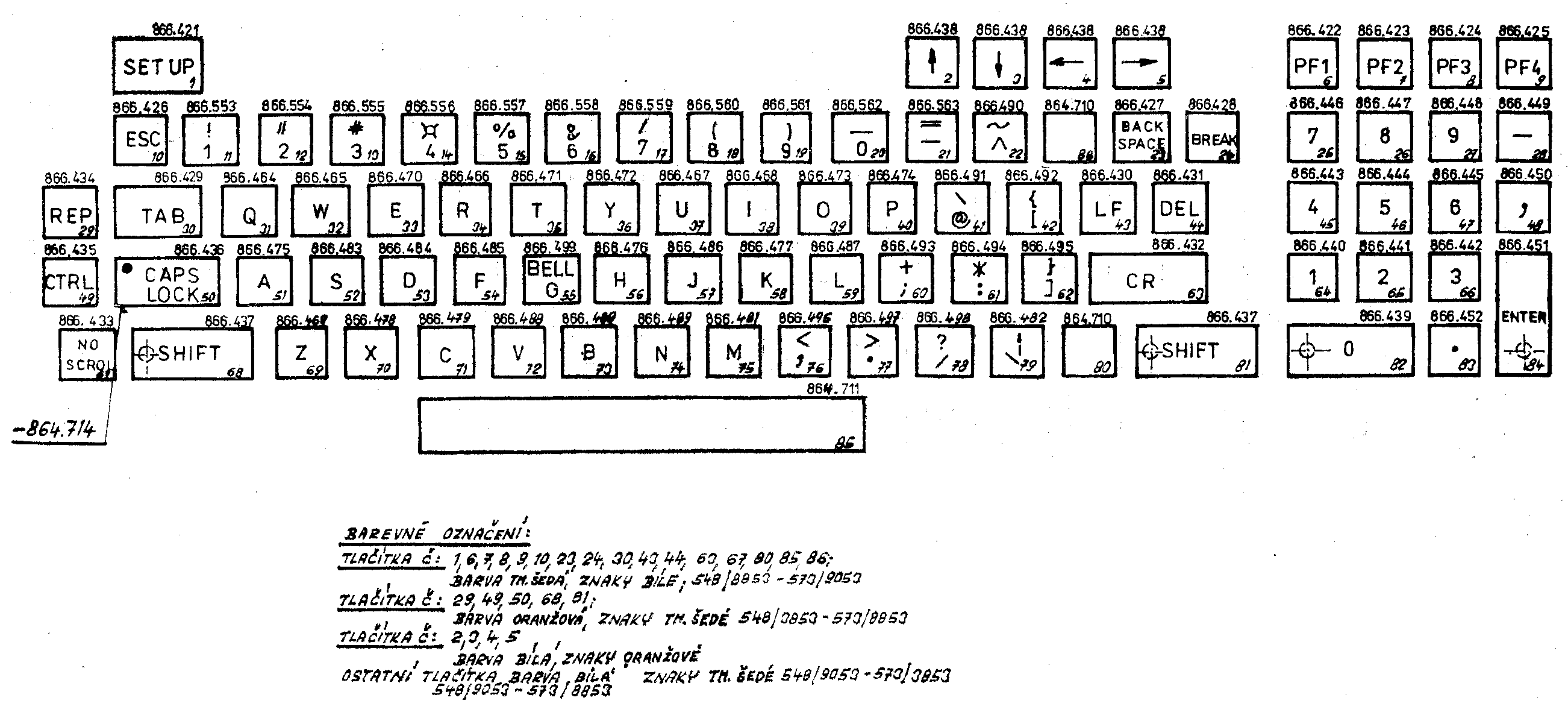 Klávesnice po zapnutí se nastaví do výchozího stavu, který je dán technickými podmínkami a je pro číslo finálu 262.5-800.580; -800.581 malá písmena latinky pro číslo finálu -800.582 ZNAKY AZBUKY (viz přílohy číslo 6, 7, 8). Přeřazení do jednotlivých registrů se provádí pomocí tlačítek SHIFT, CAPS a CTRL (viz tabulky příloh číslo 6, 7, 8).