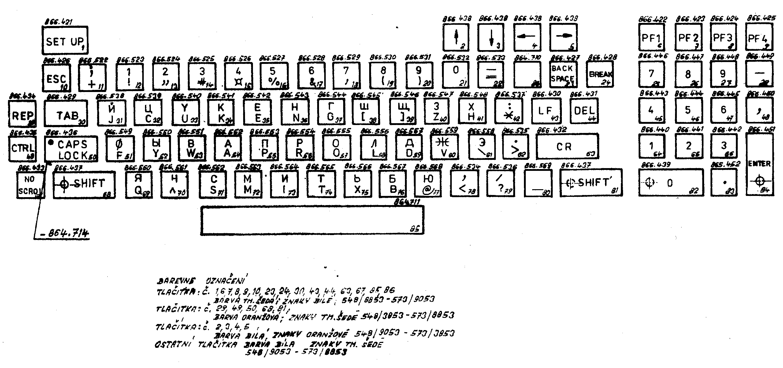 Klávesnice je provedena jako samostatný krytovaný celek, který je umístěn na pracovním stole před vlastním zařízením. Klávesnice sestává z jedné desky plošných spojů, na niž je přinýtována kovová nosná maska, která slouží k mechanickému vyztužení desky plošných spojů a současně k upevnění jednotlivých tlačítek klávesnice. Přímo z desky plošných spojů je vyveden výstupní kabel (svinutá šňůra), kterým je klávesnice propojena se spolupracujícím zařízením. Jednoduchá konstrukce klávesnice je upevněna v dvoudílném krytu z plastické hmoty. Konstrukce krytu umožňuje operátorovi, aby mohl klávesnici používat buď v horizontální poloze, nebo v poloze šikmé, kdy úhel sklonu klávesnice nepřesahuje 13°.
