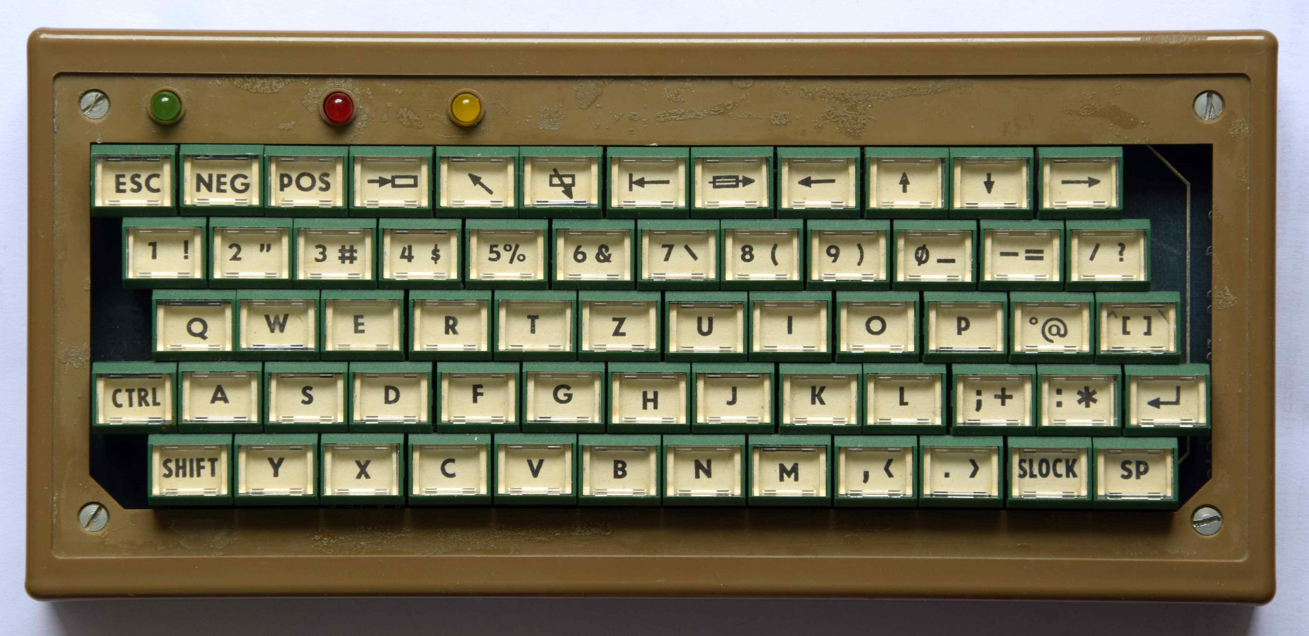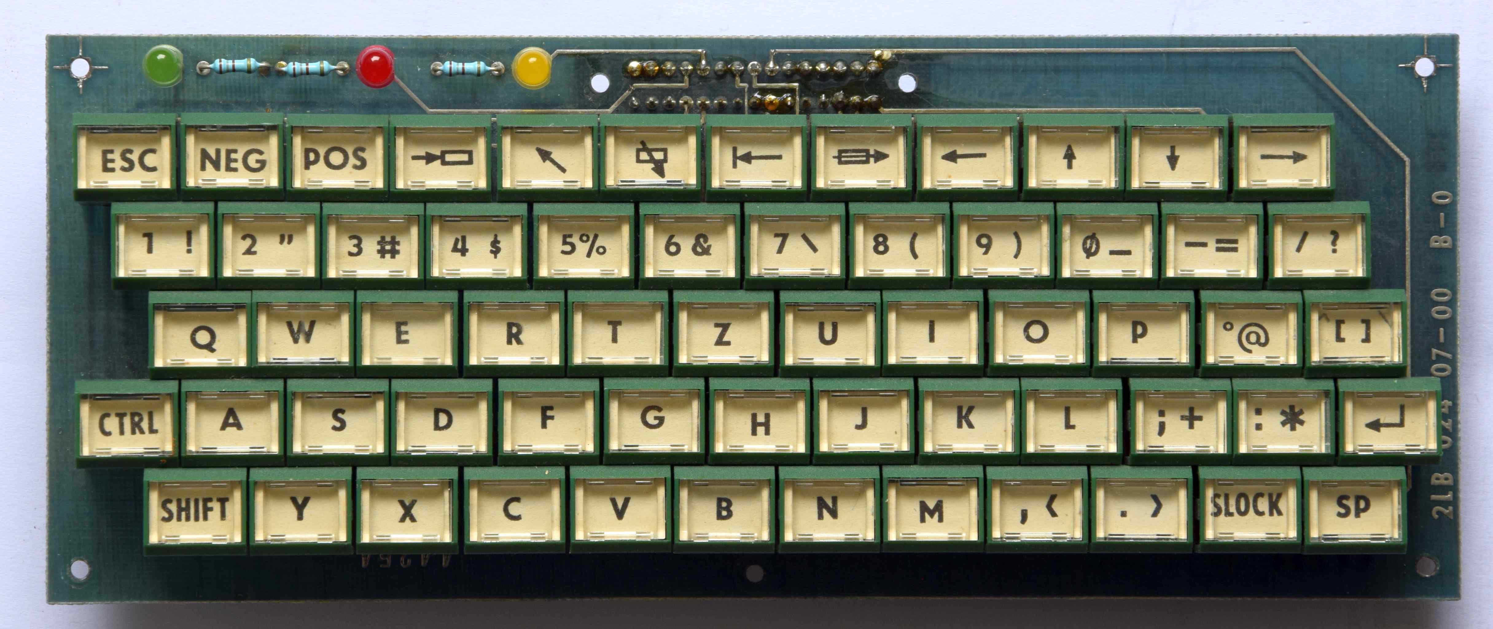 Klávesnice obsahuje dvě DPS kdy na jedné DPS je matice tlačítek a na druhé DPS je řídící elektronika, jejímž výstupem je paralelní 7 bitové ASCII se sudou paritou. Je použito 61ks tlačítek pro telefonní přístroje s tónovou volbou, přesný typ mi není znám, obdobná tlačítka (liší se hmatníky) jsou použitá i u prvních modelů PMD-85 a u PP01. Klávesnice pracuje na skenovacím principu. Zdrojem hodin pro čítač řádků je časovač MAE555 (NE555), dekodér na 1 z 5 (8) je řešen pomocí PROM MH74188 a to z toho důvodu že je potřeba výstup v pozitivní logice. Pro sloupcový kodér je použit „kodér pro bezkontaktní klávesnice“ MH1KK1. Převod ze souřadnice v tlačítkovém poli na konkrétní znak je použitá dvojce PROM MH74S571.