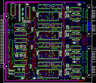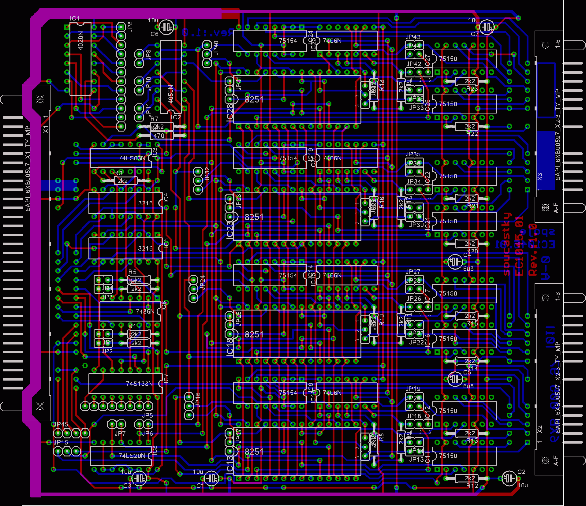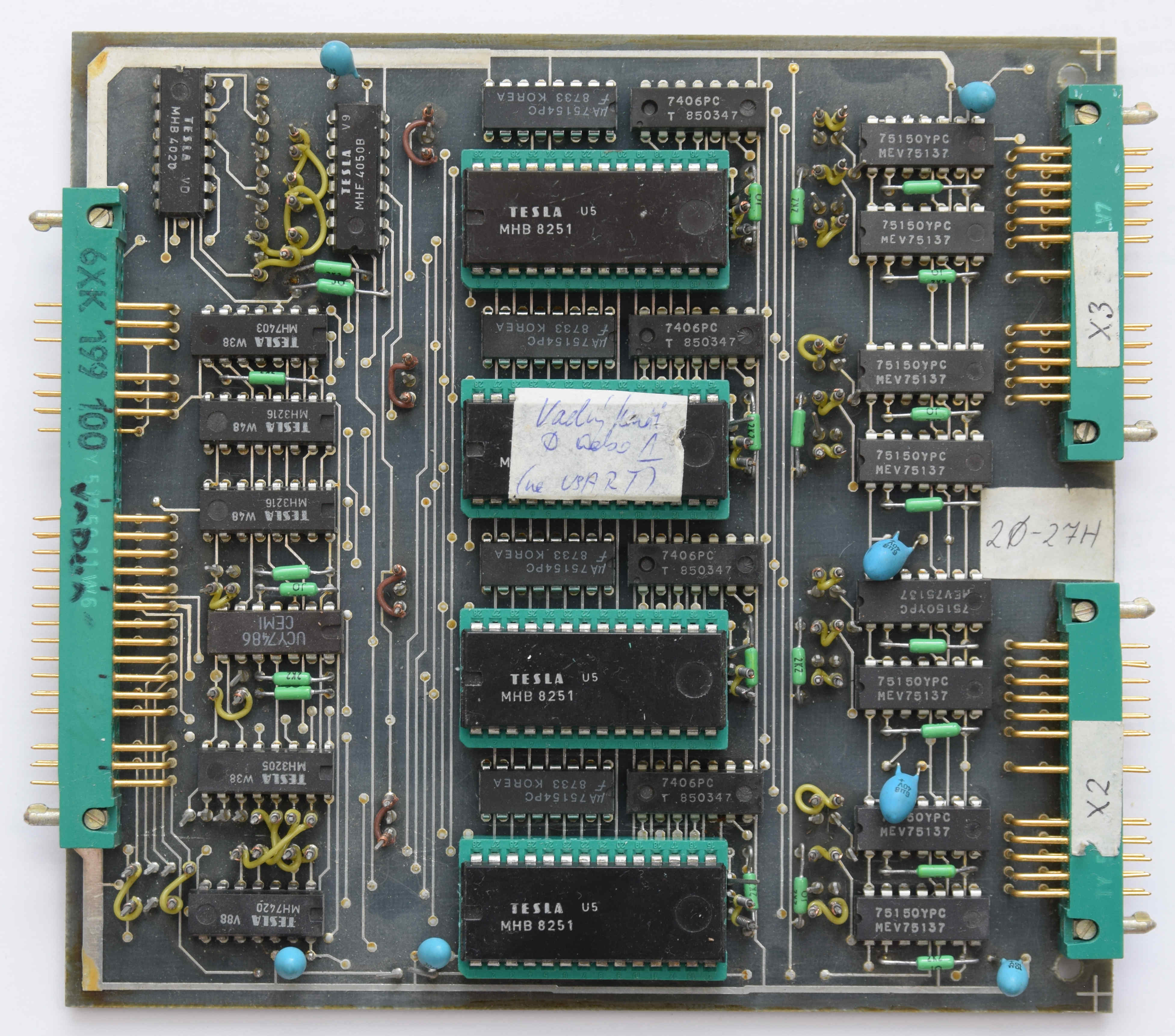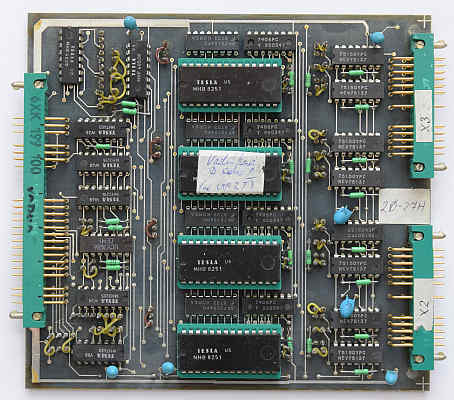 Deska obsahuje čtyři obvody USART 8251 kdy zapojení linkových budičů nasvědčuje tomu že, byly použity externí linkové budiče nebo telefonní modemy.