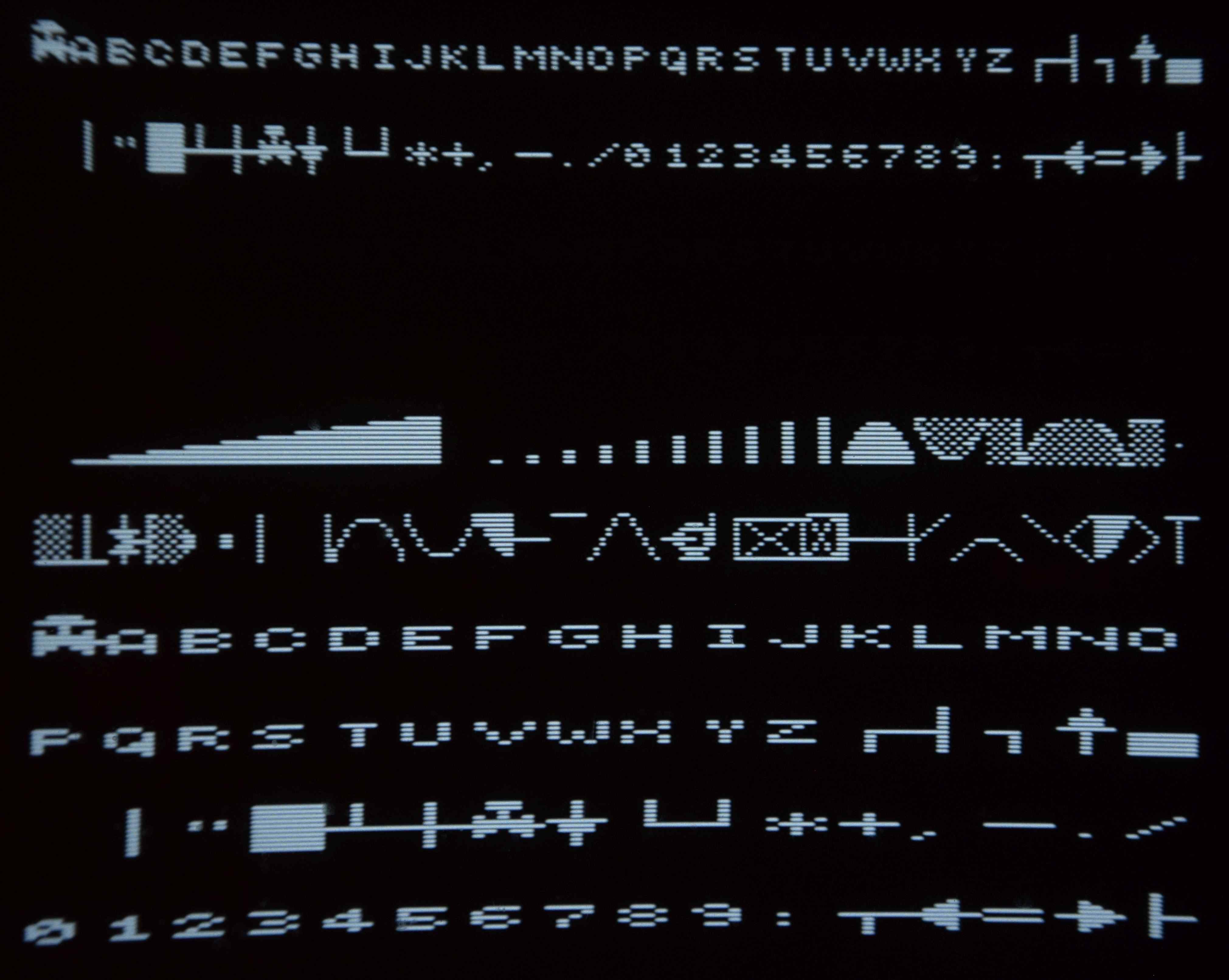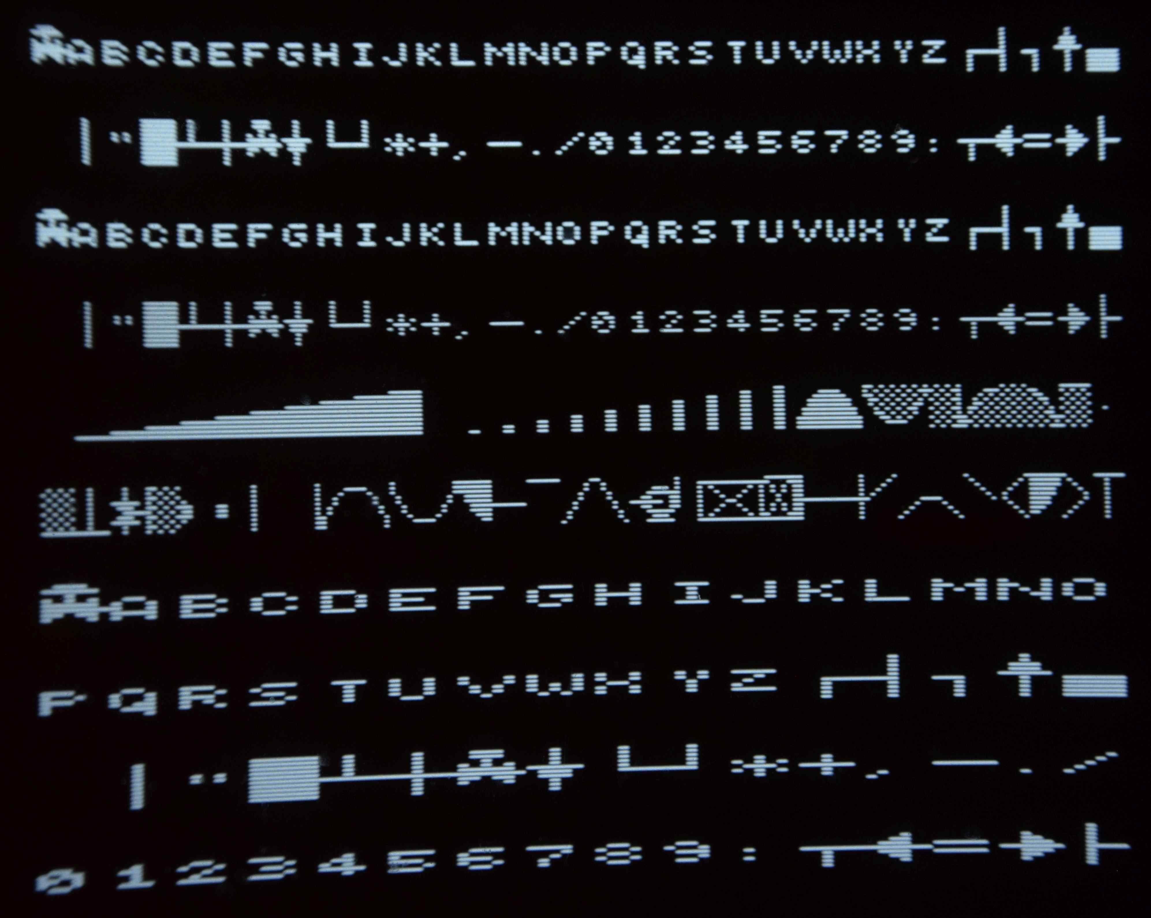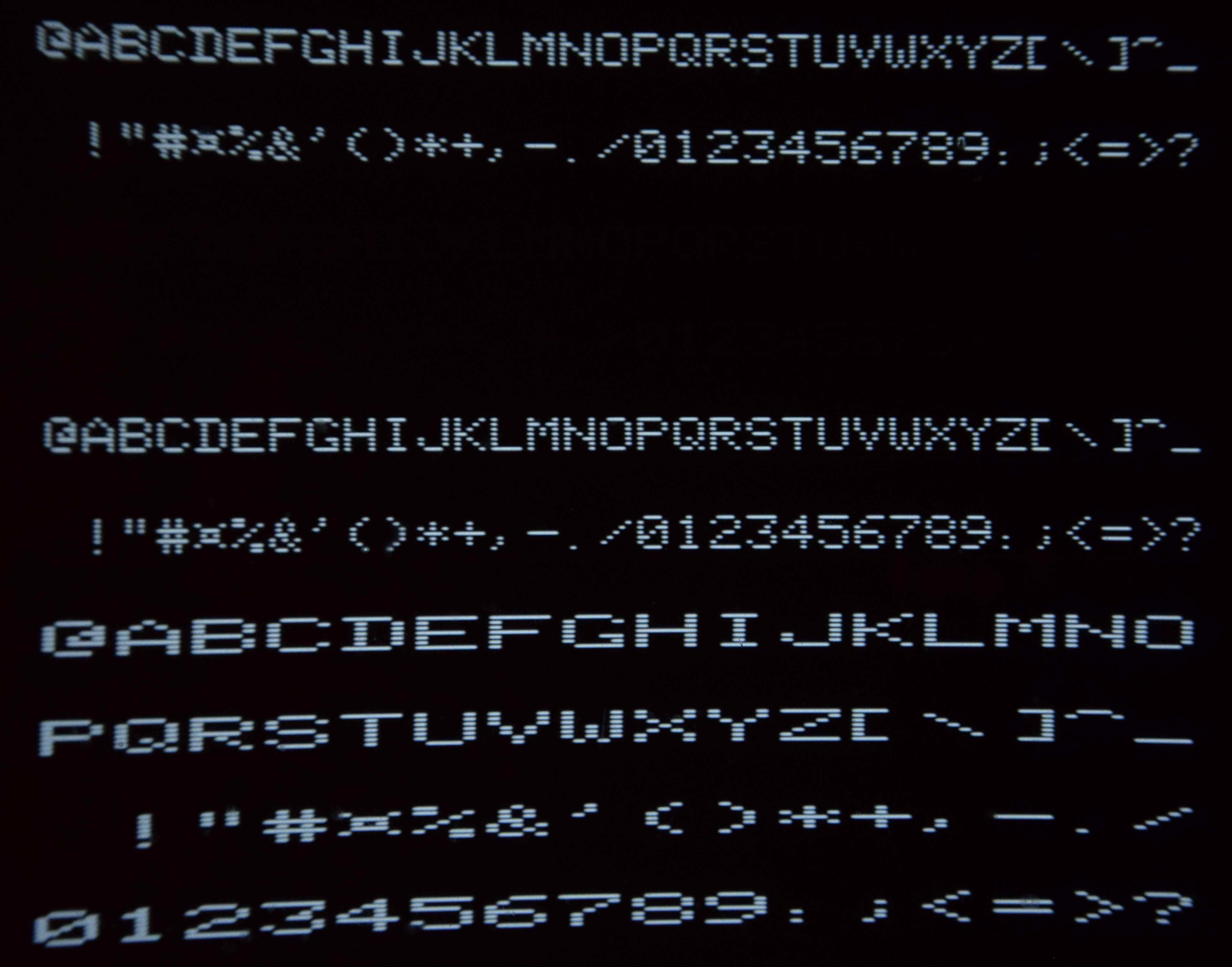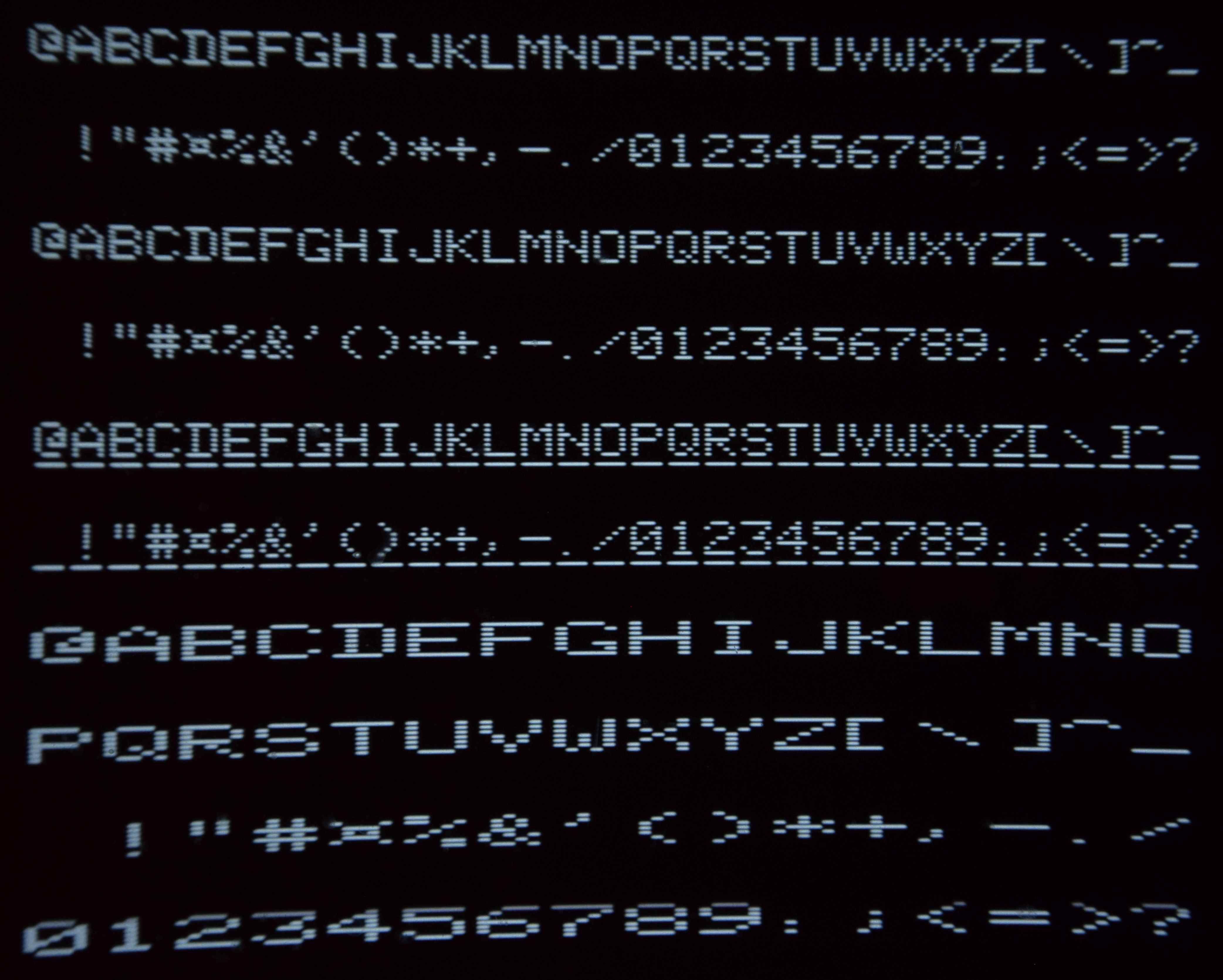 Zobrazení fontu znakového generátoru.