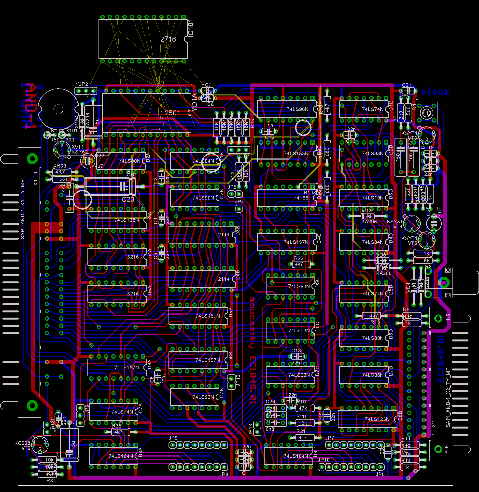 Na DPS jsou tři přerušené (přeškrábnuté) spoje, kdy dva mají přímou souvislost se zmiňovanou úpravou a tření je úprava pro zmenšení rušivých vlivu „sněžení“ při práci s displejem. Úprava spočívá v tom že „sněžení“ se místo bílých linek, projevuje černými linkami, což působí mnohem méně rušivé. Nový znakový generátor v podání EPROM 2716 je připojen pomocí pomocné DPS která zajišťuje i mechanické upevnění EPROM.
