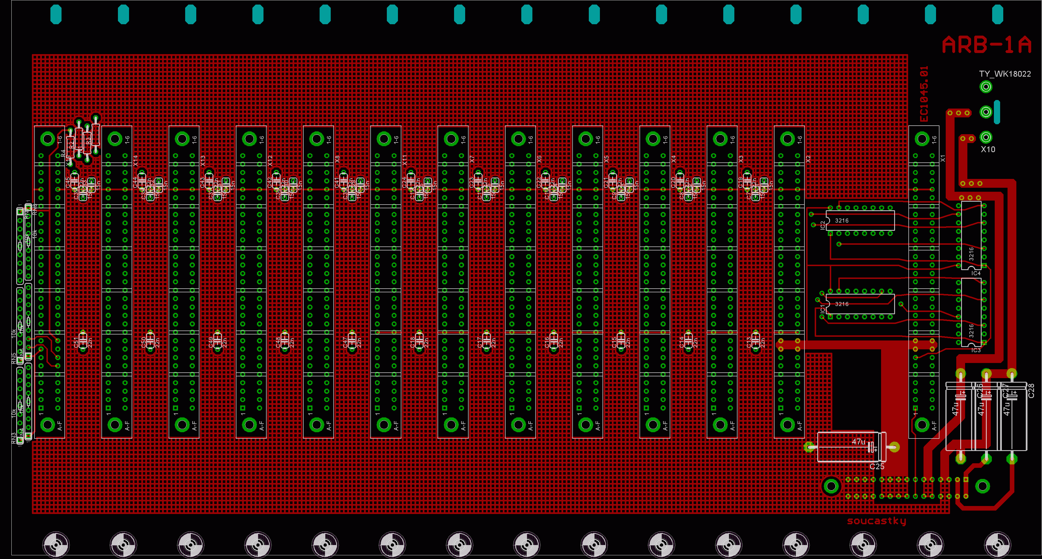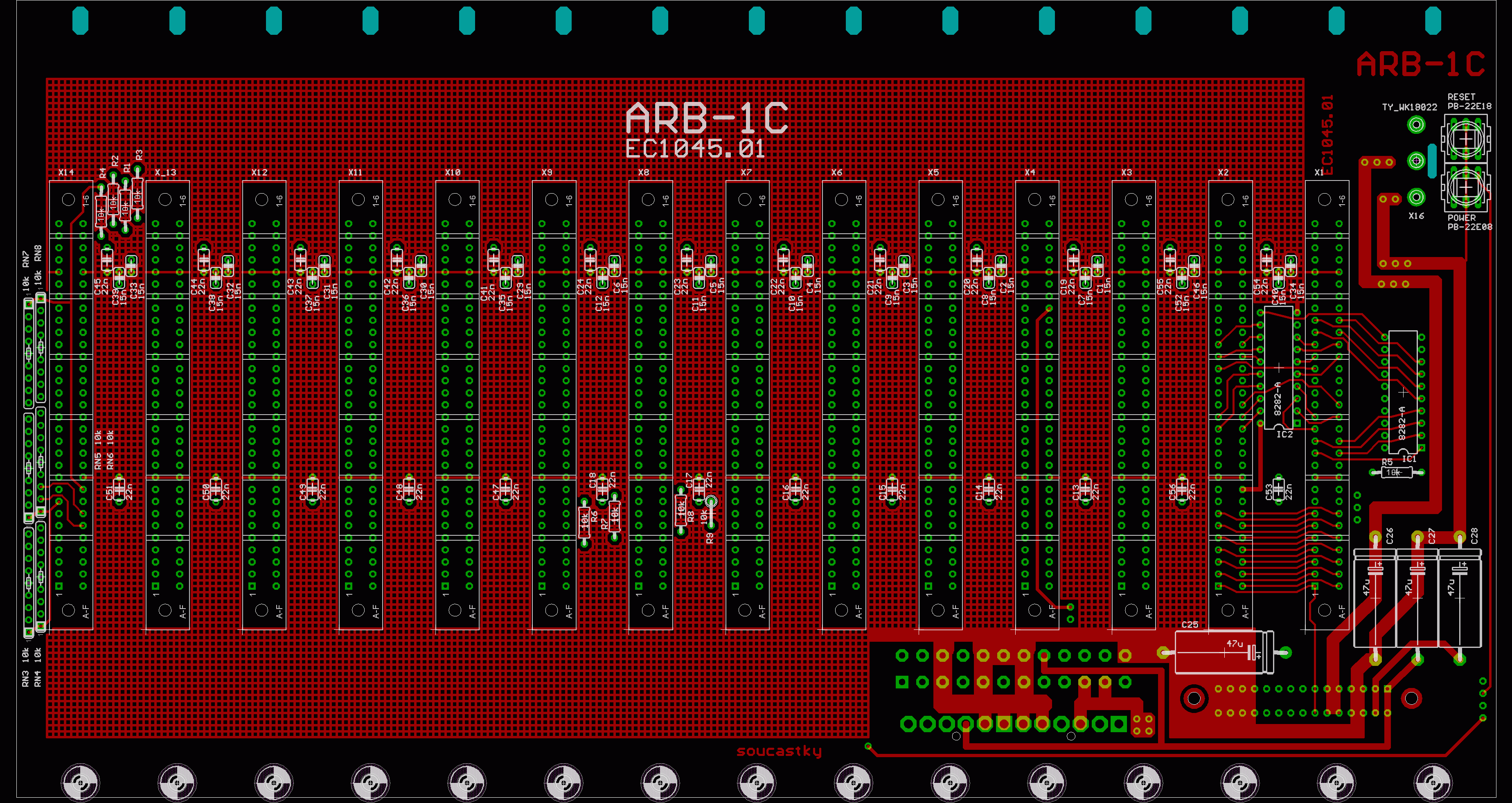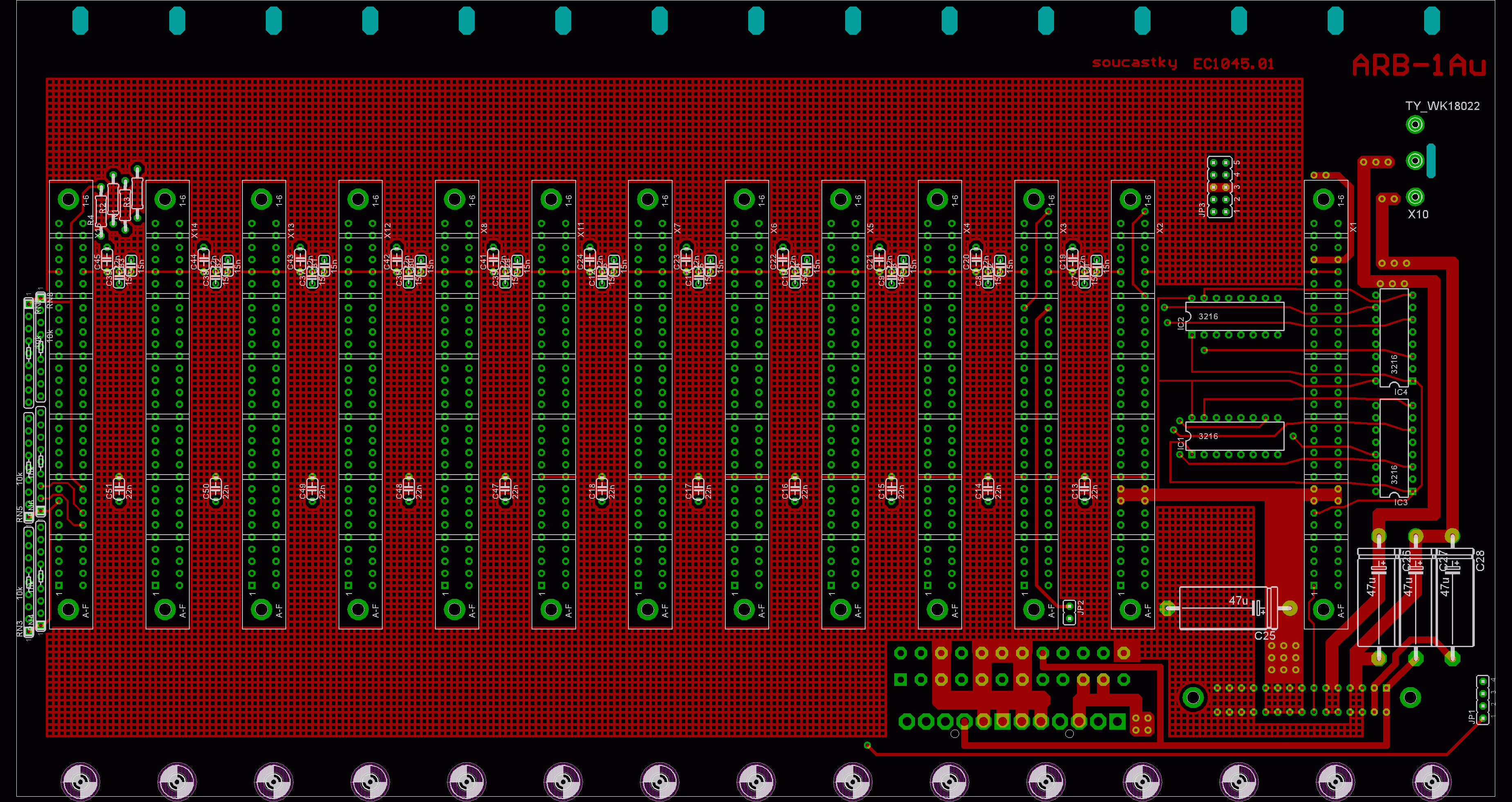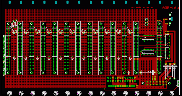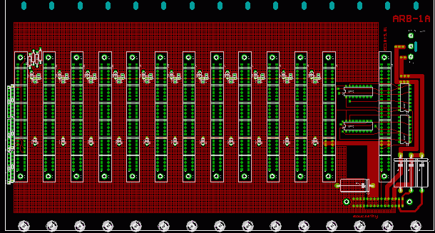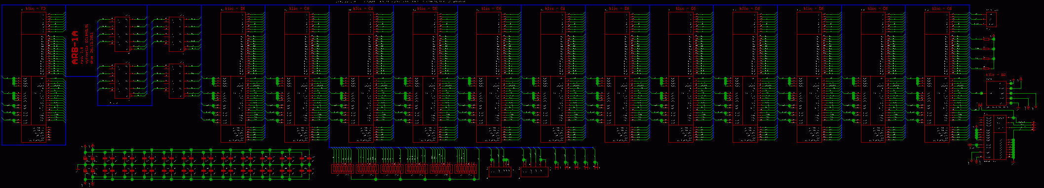 ARB-1A je pouze prodloužena původní ARB-1, kdežto u ARB-1B jsem si trochu pohrál a přidal ještě jeden konektor do volného prostoru, což si vyžádalo předělaní budičů adres. Po několika pokusech jsem nakonec skončil u 74xx541