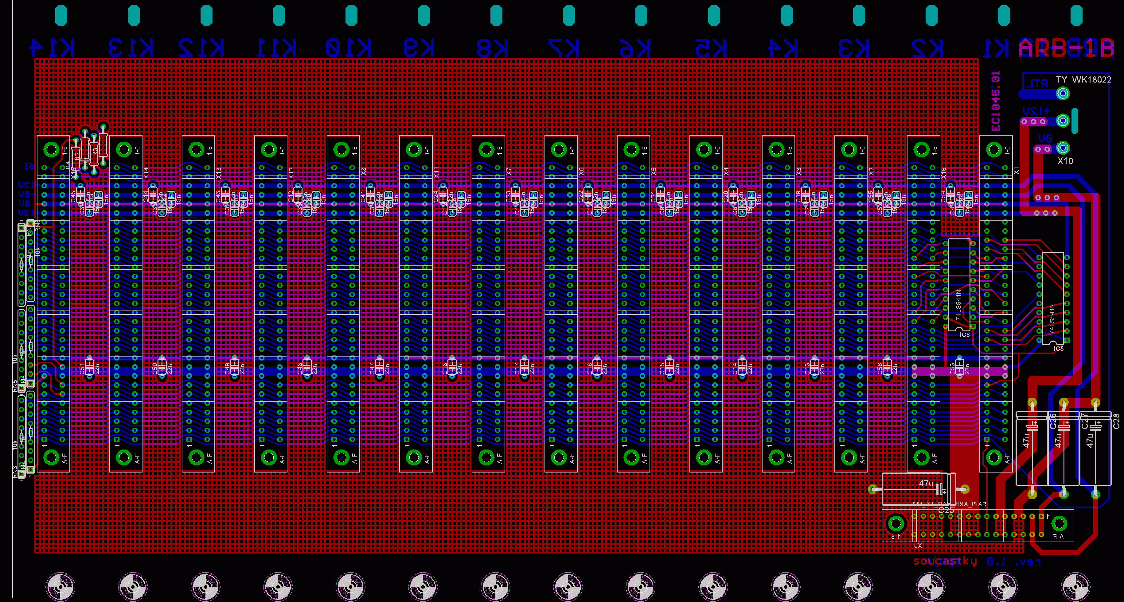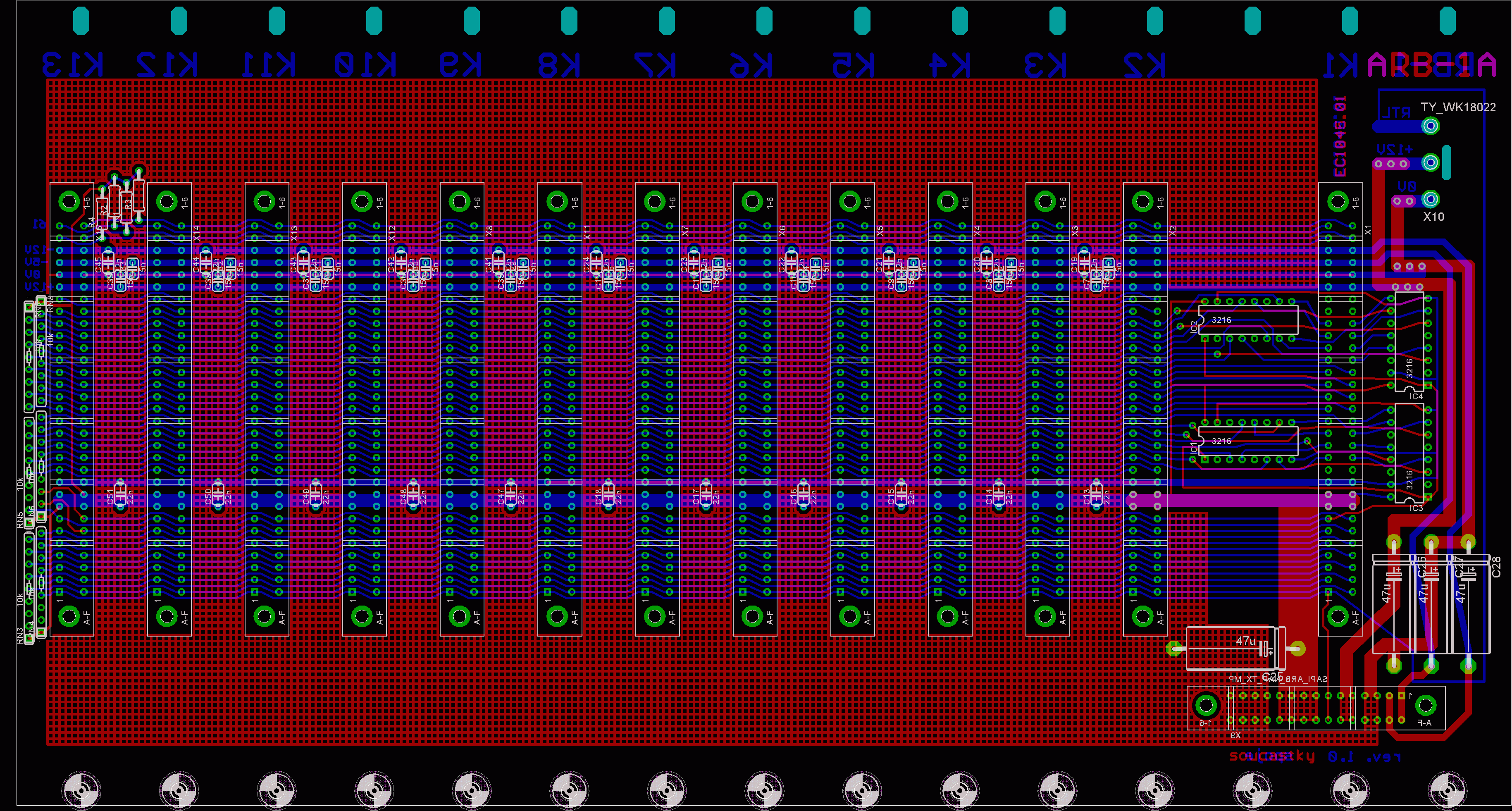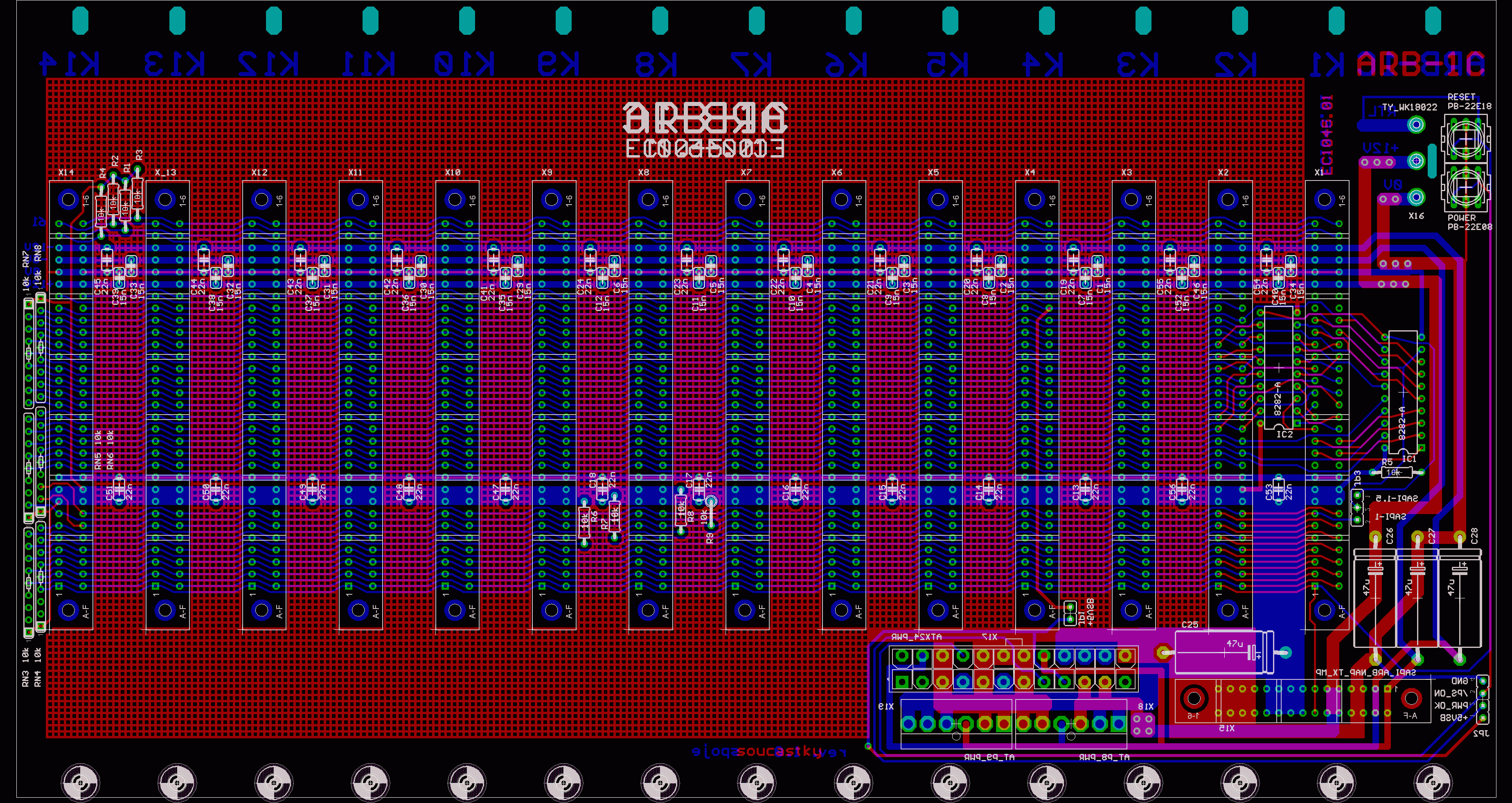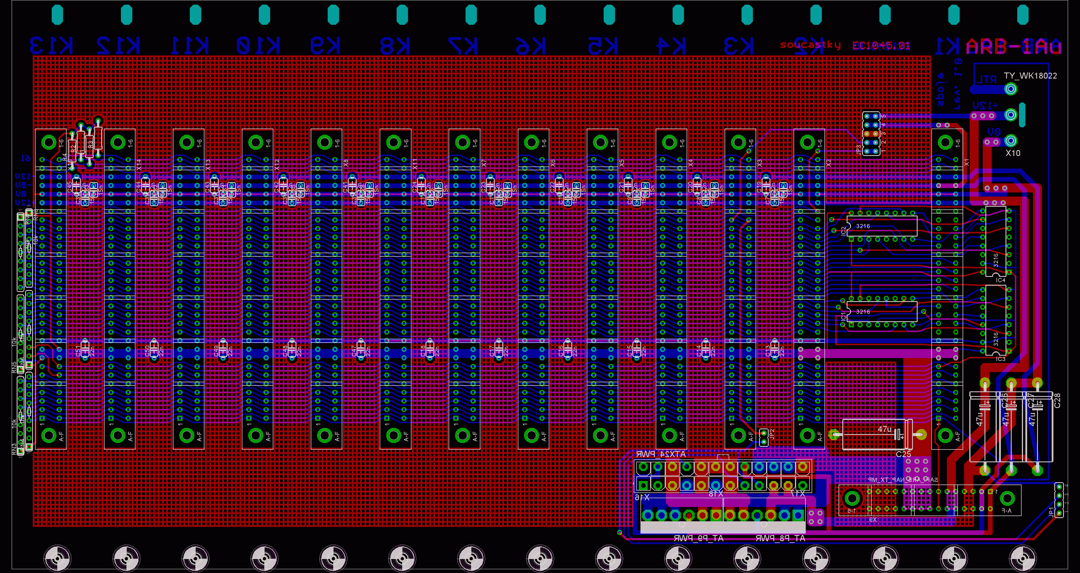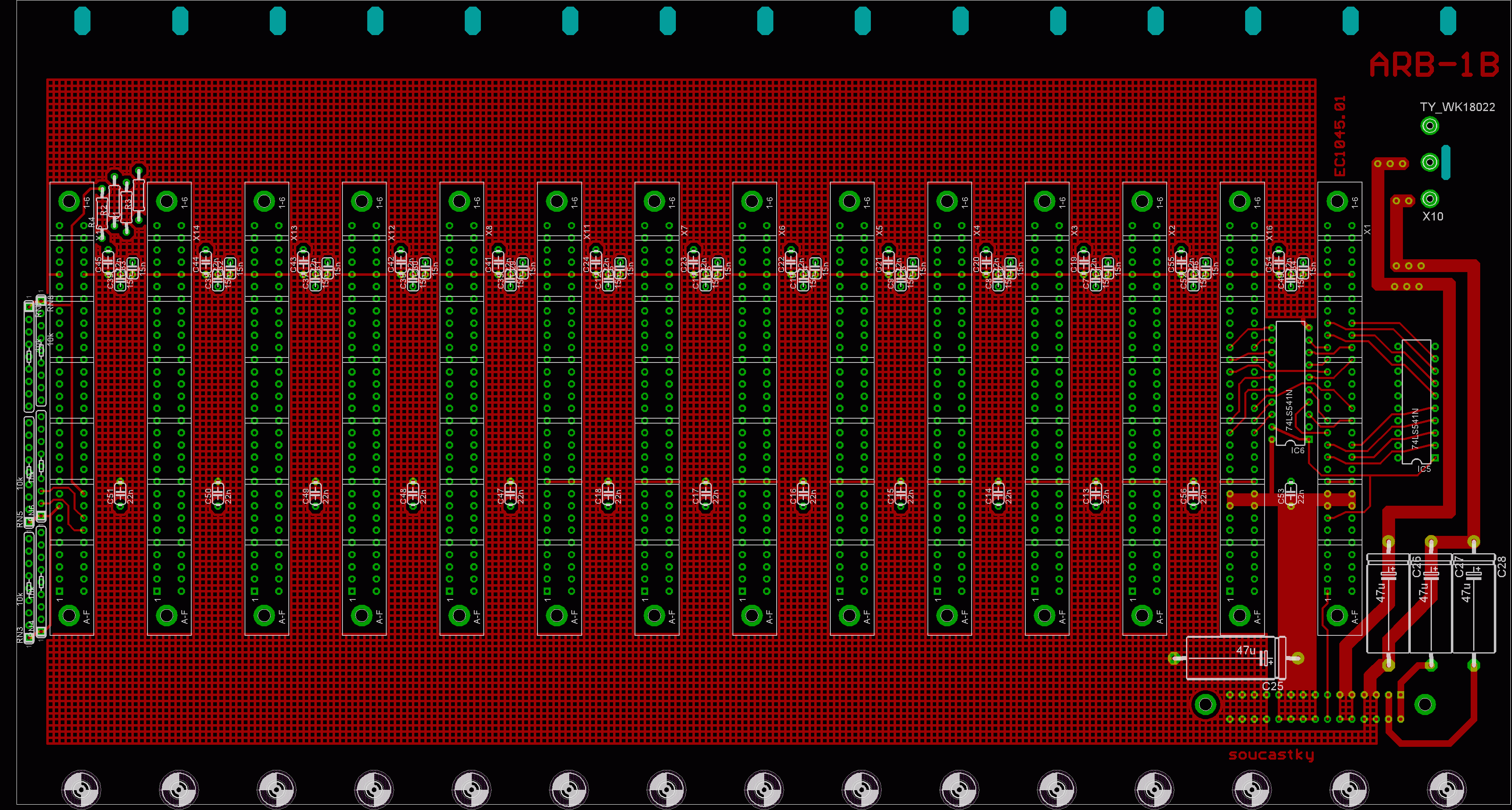 ARB-1A je pouze prodloužena původní ARB-1, kdežto u ARB-1B jsem si trochu pohrál a přidal ještě jeden konektor do volného prostoru, což si vyžádalo předělaní budičů adres. Po několika pokusech jsem nakonec skončil u 74xx541