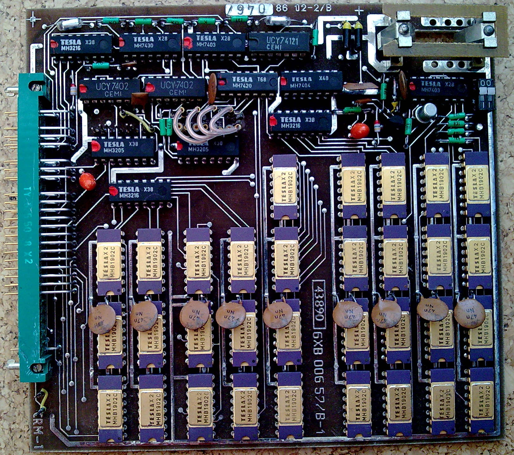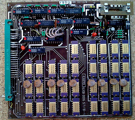 Při poklesu napájecího napětí sepne tranzistor VT2 a přes hradlo NAND DD12 typu MH 7403 je na vstupy CS pamětí MHB 1902 přivedena úroveň H. Tím je znemožněn výběr paměti jak pro operaci čtení, tak pro operaci zápis, v době kdy v důsledku poklesu napájecího napětí vznikají v systému nedefinovatelné přechodové jevy vedoucí občas k poškození obsahu pamětí. Po poklesu napájecího napětí na hodnotu záložního napájecího napětí dojde k přepnutí napájení na záložní zdroj. Propojením spojky 22 - 23 je možno napájet paměť z vnějšího záložního zdroje přes špičku 48 konektoru XC1. Rezistor R1, se používá v případě akumulátorového záložního zdroje a jeho velikost je dána povolenou hodnotou trvalého dobíjecího proudu.