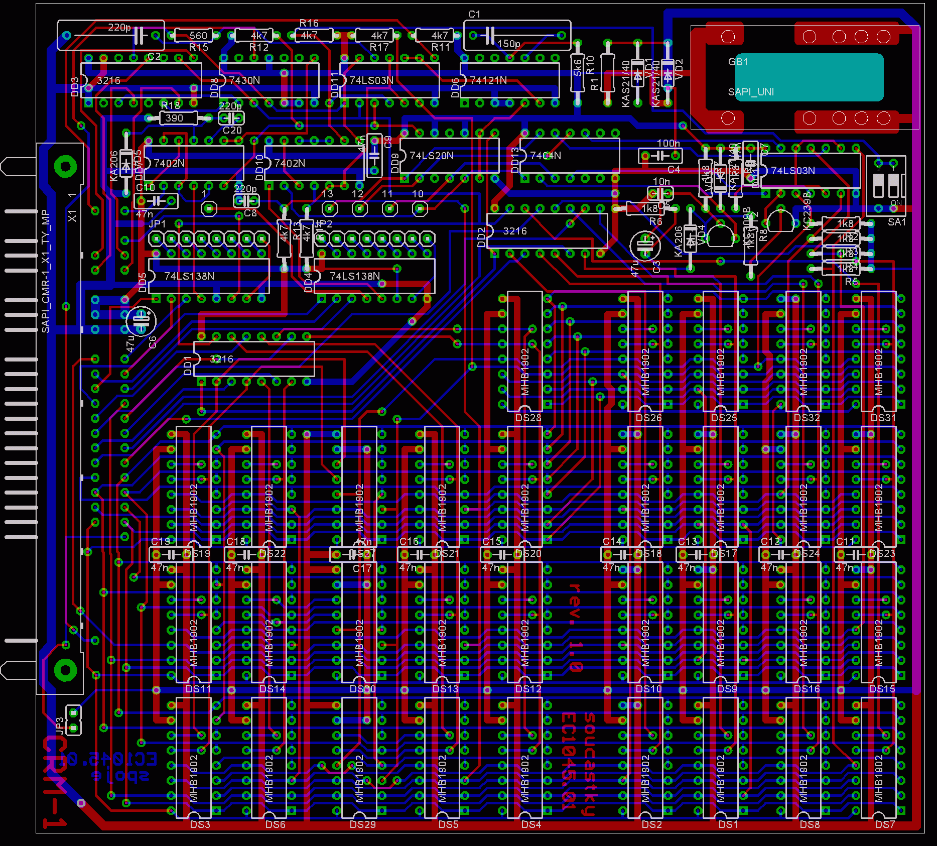 Protože při praktickém využití je často zapotřebí blokovat některé informace proti přepsání, je na desce obvod tvořený spínačem SA1 a čtvrtinou obvodu DD11. Po sepnutí spínače SA1 dojde k vyloučení možnosti zápisu do té části paměti, která je ovládána signálem CS1.