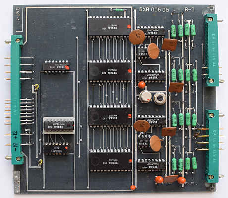 Tyto registry jsou tvořeny obvody MH 3212, které mají malé vstupní proudy a nezatěžují příliš sběrnici. Výstupy z registrů jsou pak vedeny přímo do integrovaných převodníků MDAC 08. Registry jsou nulovány signálem RESET, takže výstupní napětí D/A převodníků je po zapnutí na minimální hodnotě (0 V nebo - 5 V nebo - 10 V, podle zapojení propojek).