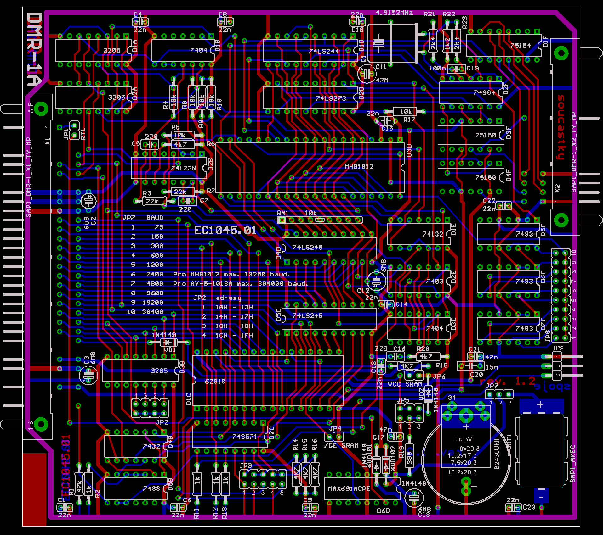 Obvody sériového modemu vycházejí z desky DSM-1, kdy je zachována plná programová slučitelnost pro sériové rozhraní tj. RS232C. Vynechány jsou obvody pro spolupráci s kazetovým magnetofonem a obvod pro dálnopisný konvertor DPK-1. Z důvodu slučitelnosti s DSM-1 byl zachován UART MHB 1012 (AY-5-1013) ale kde to bylo možné, se použili modernější ale hlavně prostorově úspornější obvody. Konkrétně 2x 3216 je nahrazen 74LS245 a 2x MH3212 jsou nahrazeny obvody 74LS244 a 74LS273. Zjednodušen byl zdroj hodin pro přenosové rychlosti, zrušené byli přenosové rychlosti 200, 100 a 50 baud a byli přidány přenosové rychlosti 19200 a 38400 baud. Podle katalogu je maximální přenosová rychlost pro UART MHB 1012 19200baud a pro UART AY-5-1013 38400 baud. Z UART MHB 1012 jde vybrat obvody, co chodí spolehlivě i při 38400 baud.