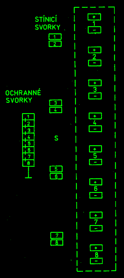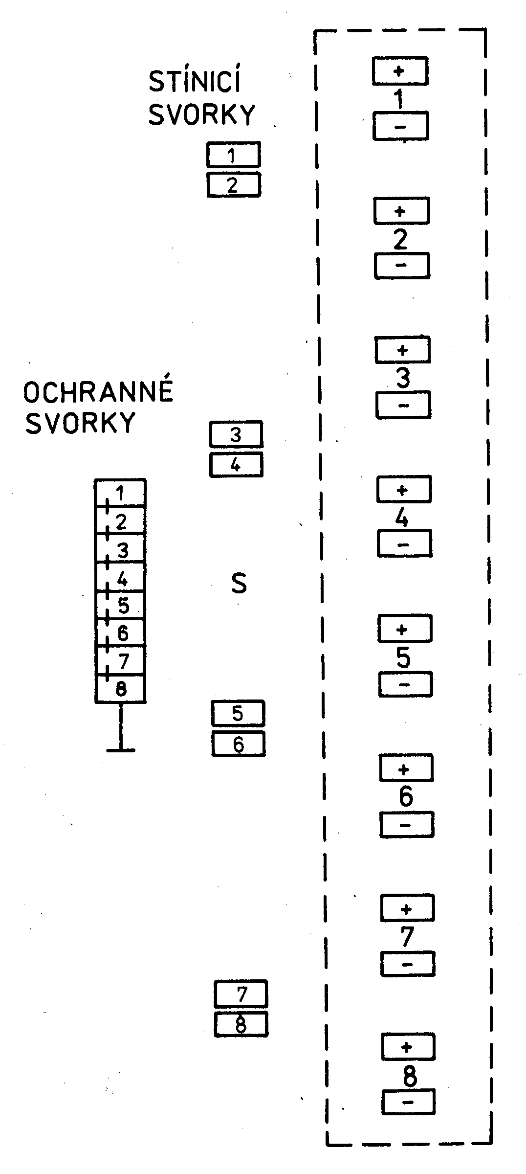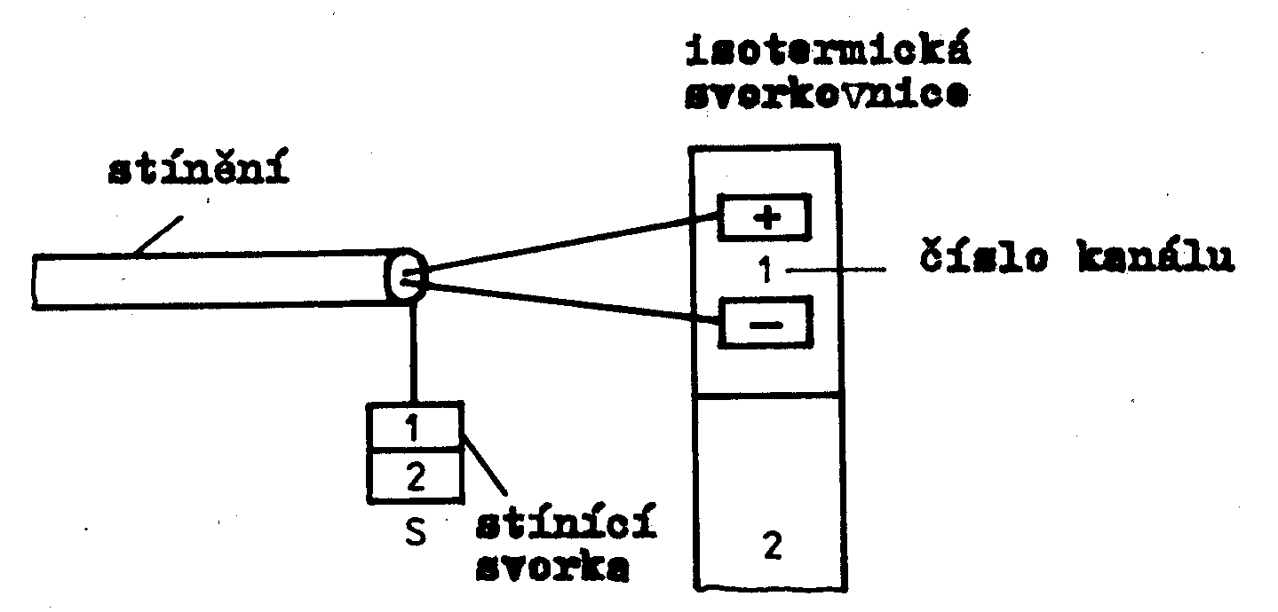 K těmto svorkám se připojuje stínění termočlánků, resp. kompenzačního vedení každého kanálu.