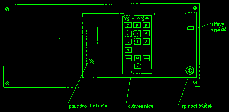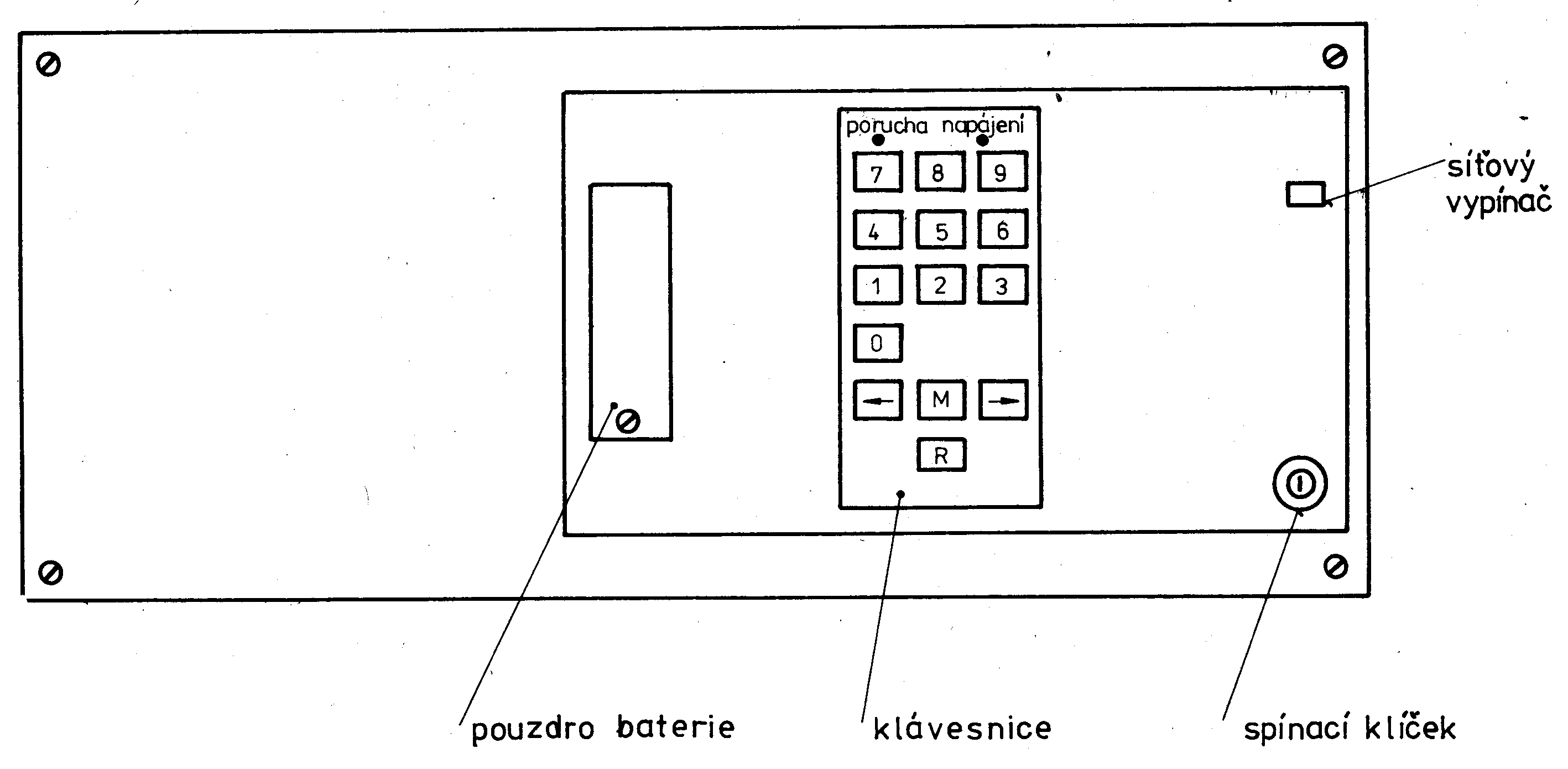 Mimo uvedené prvky je na čelním panelu umístěna pod krycím víčkem baterie pro záložní napájení RTC-1 a CRM-1.