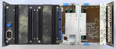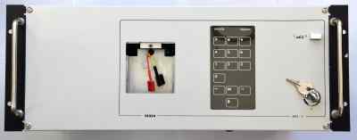 Na čelním panelu zásuvného rámu jsou umístěny ovládací prvky (spínací zámek, řídicí klávesnice), optické indikátory (svíticí diody), sítové tlačítko a pouzdro pro záložní napájecí zdroj.