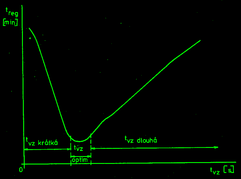 Pozn.: Významná část přechodové funkce je úsek mezi body, v nichž odezva na skokový vstupní signál nabývá 10 % a 90 % hodnoty ustálené.