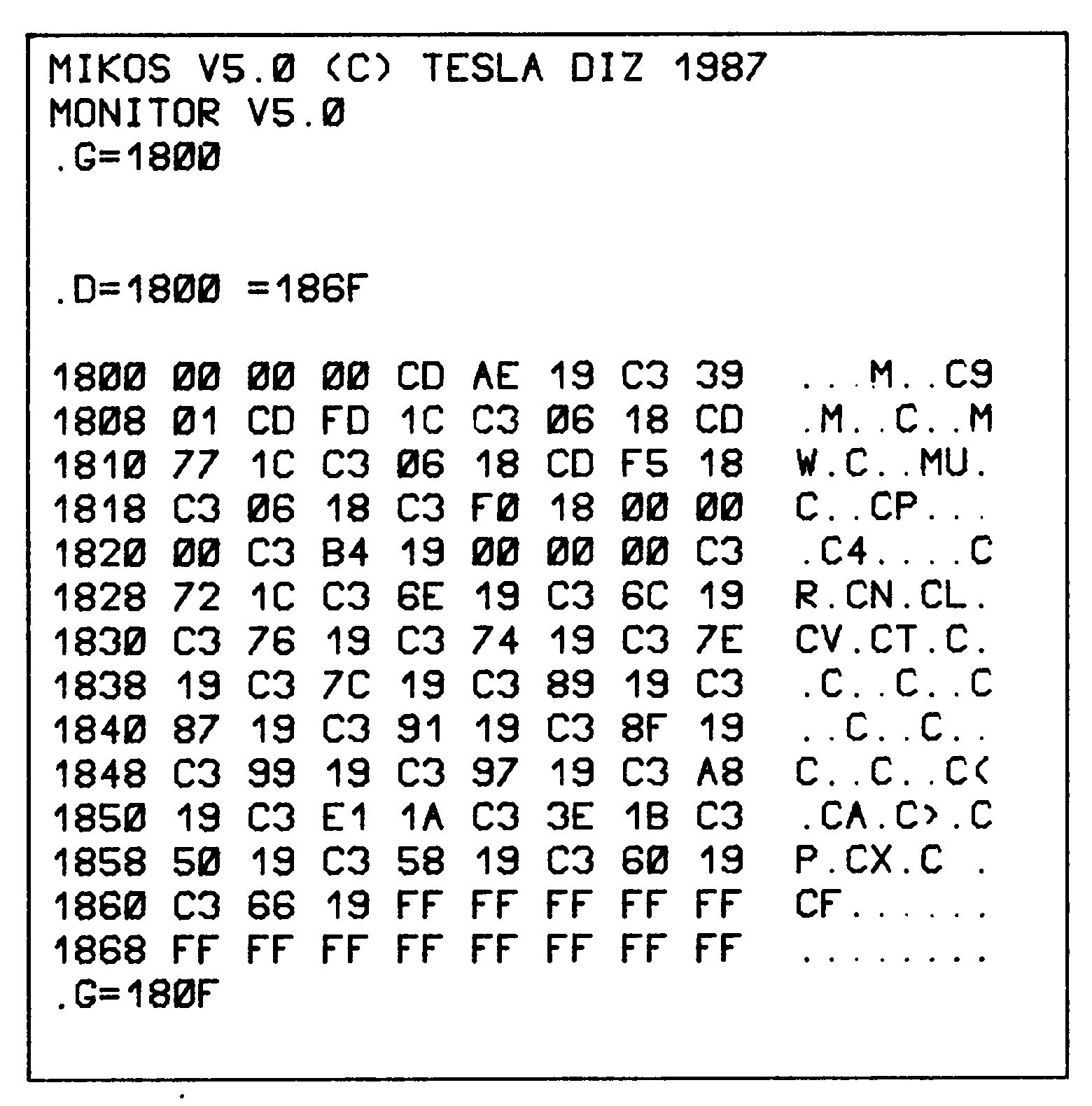 Původní verze tj. jak byl získán listing, umístění v EPROM 1800-1FFFH