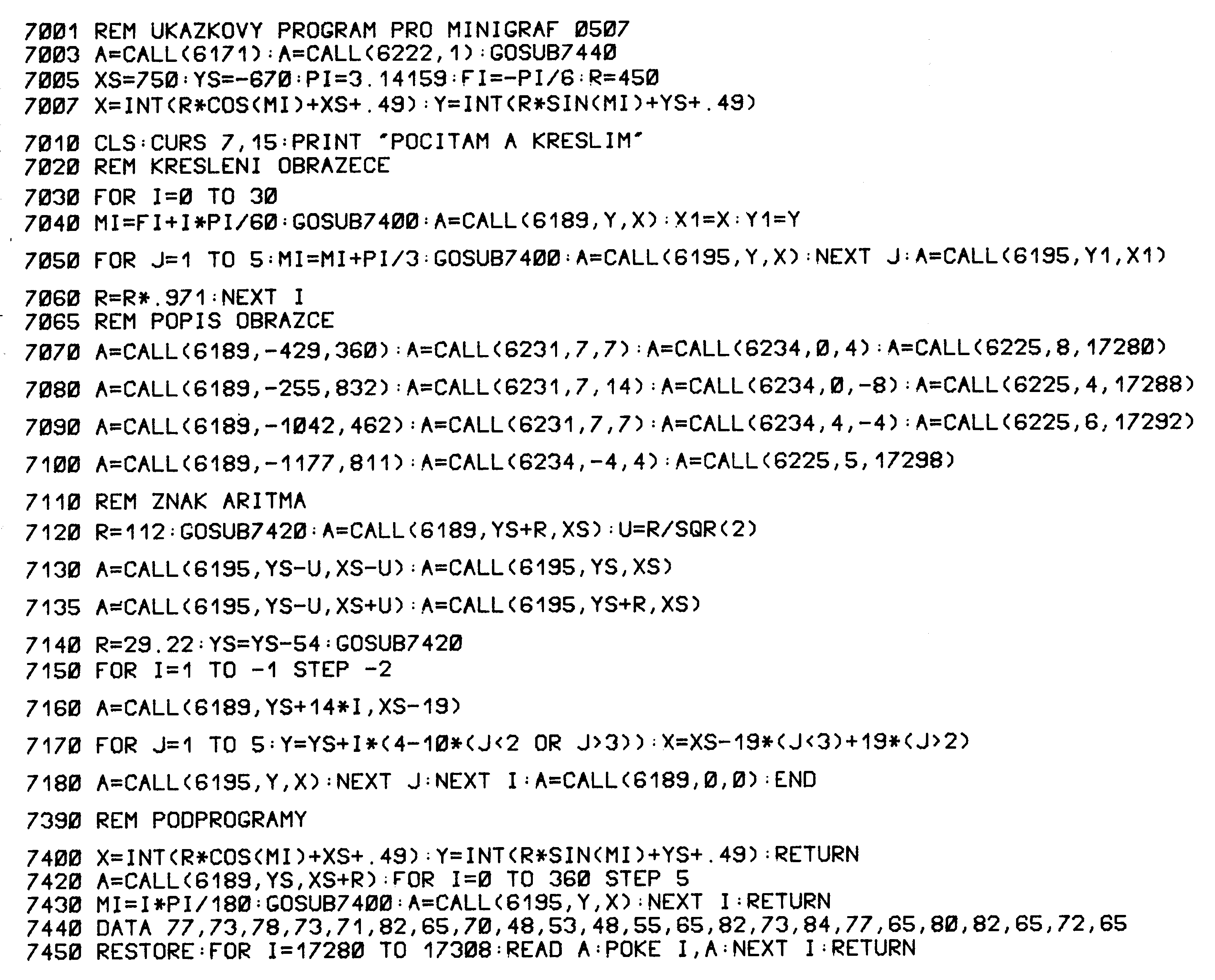 PRO MINIGRAF, MUSIME JESTE ZADAT X=CALL(17411).