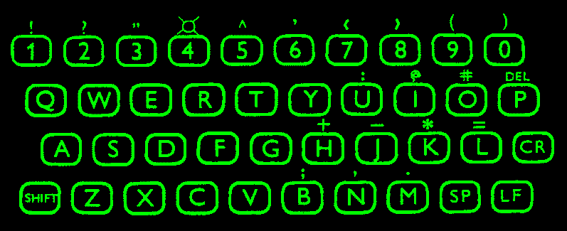 Není realizována funkce <--. Klávesa CR provádí zároveň funkci LF. Klávesa, označená LF má ve skutečnosti funkci BS, tj. krok zpět.