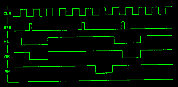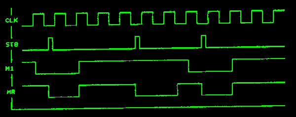 Časový průběh řídicích signálů při operaci LD A,(HL)