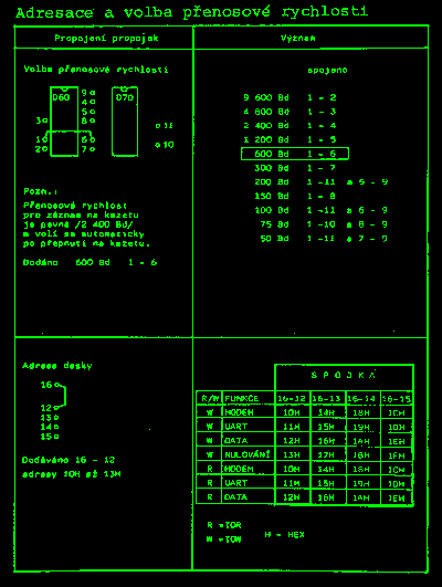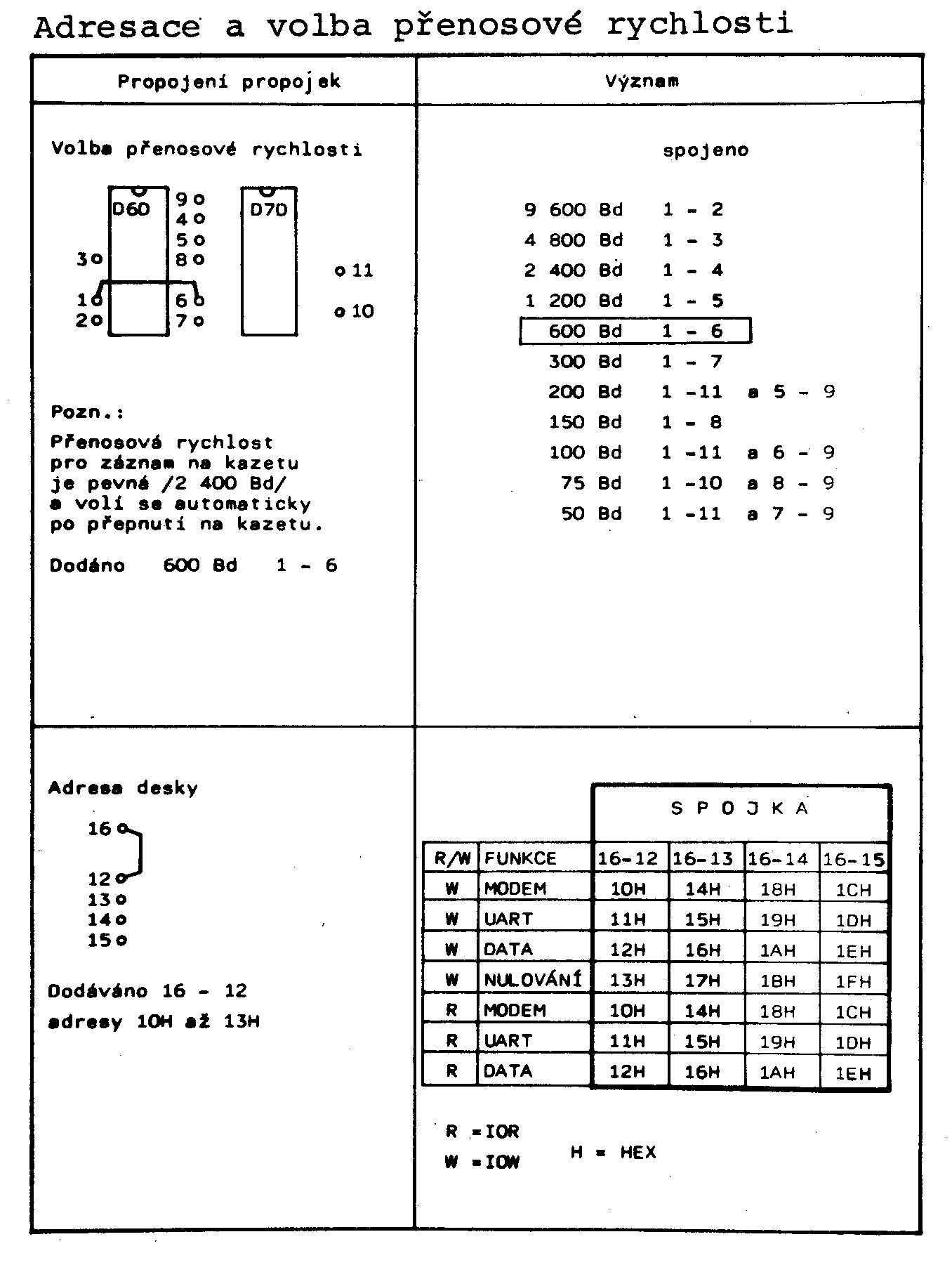 hodnotu 2400 Bd. Rychlosti pro terminál, modem nebo dálnopis lze volit pomocí propojek - viz příloha.