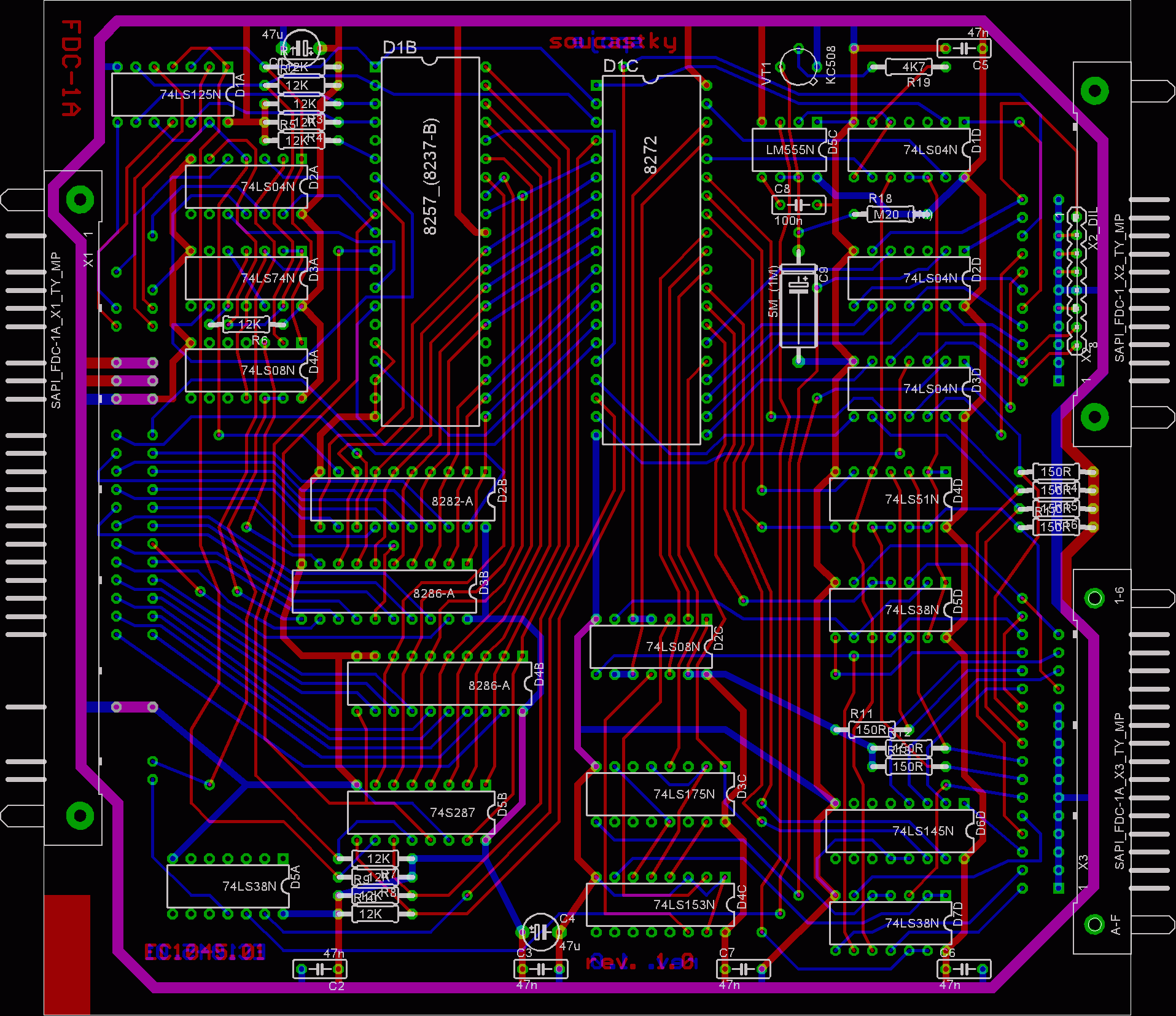 Dvoudeskový řadič FDC-1 umožňuje připojit k mikroprocesorovému systému SAPI-1 mechaniky pružných disků a vytvořit tak systém pracuj i pod operačním systémem CP/M.