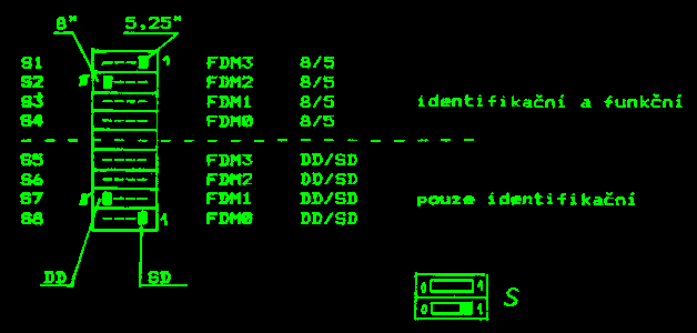 | - 4 ks | mechanik s průměrem 8" s jednoduchou i dvojitou hustotou (v normě FM i MFM) a jednostranným i oboustranným záznamem |